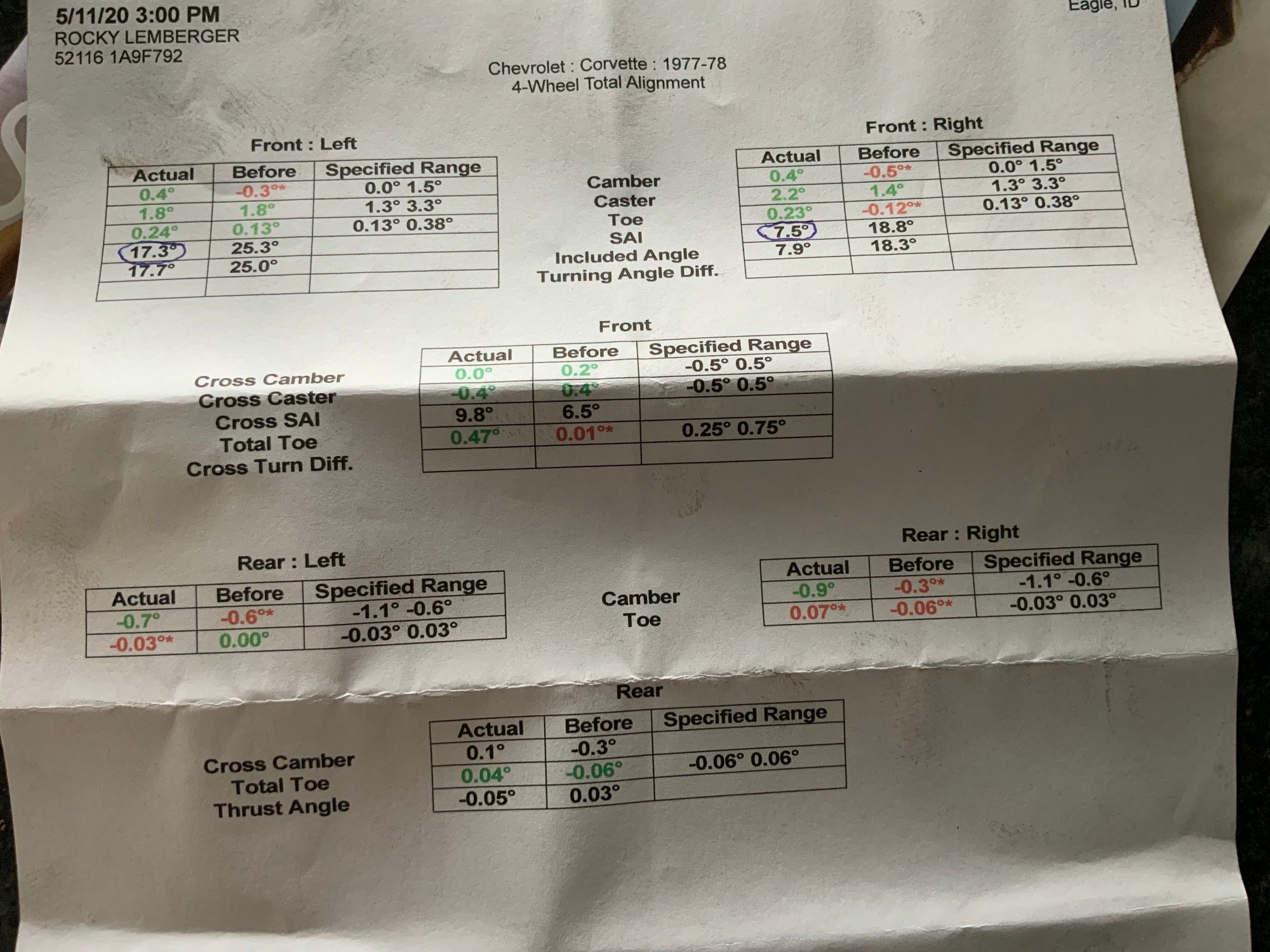 Other than that alignment looks good, stock specs, but good.