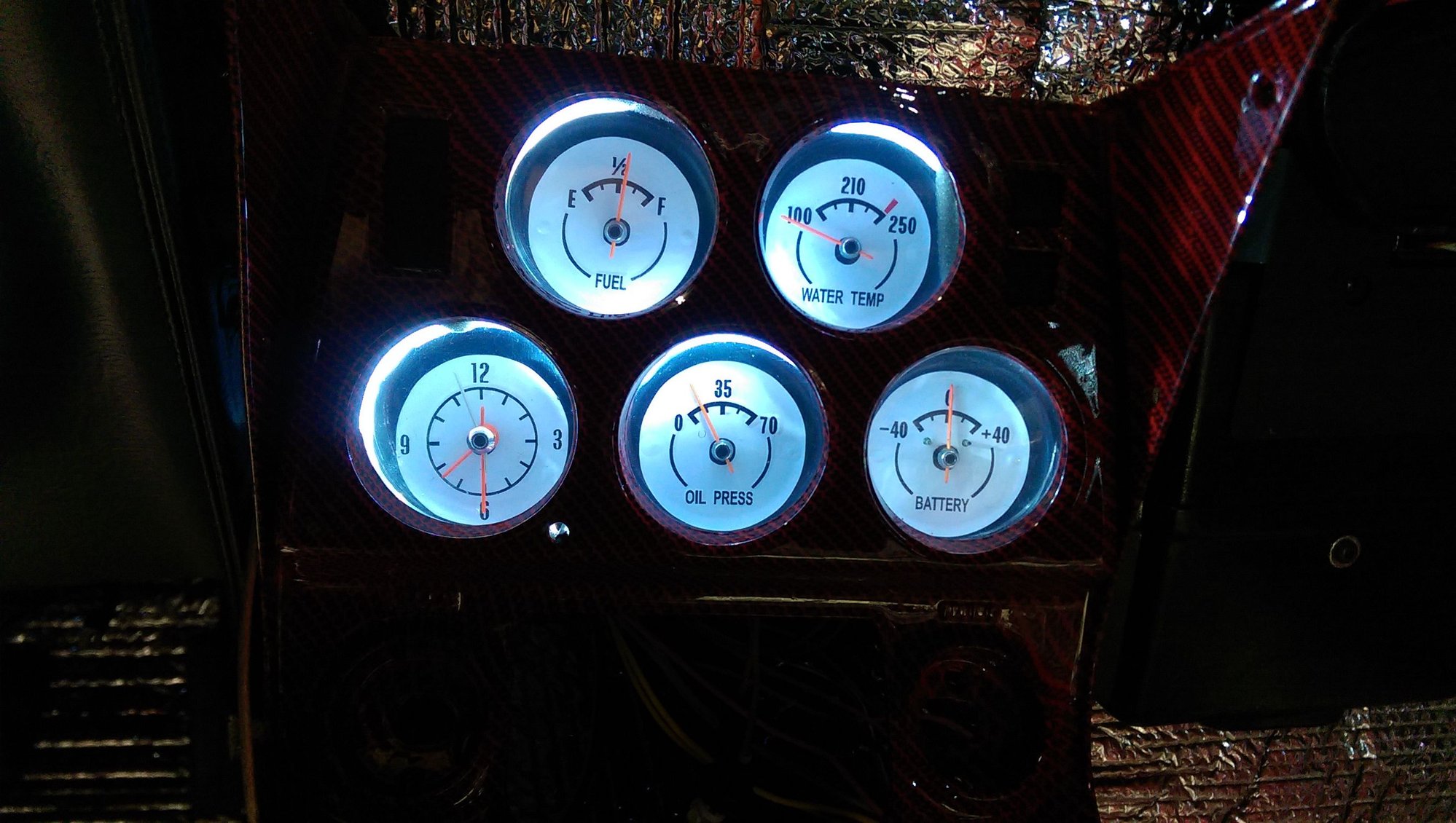 When I put my dash together I had the bezels hydro coated and the rear (blue parts) of it was stained by accident with red and gave me a pinkish looking color , I didnt like. I took everything apart and painted it all non visible parts that were oversprayed red with White and that gave me the cool white I was looking for!!