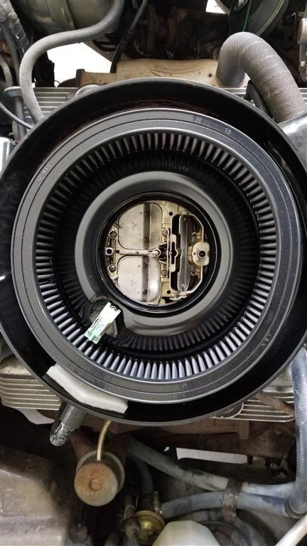 Your flex hose is not connected to your air cleaner stove pipe inlet, 1st photo. On a cold start this hose draws in warm-hot air generated by the exhaust manifold.