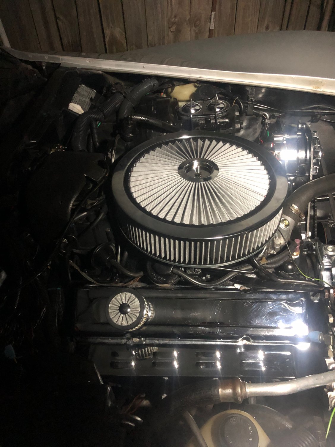 in your photo I can see you still have the factory upper Rad seal, which is cut out in the center for the air intake duct. which you no longer have. although I really don't think this is the main problem. (Really does sound like a bad cap). every little bit helps with these old cars. You can get that upper seal for a earlier year car.