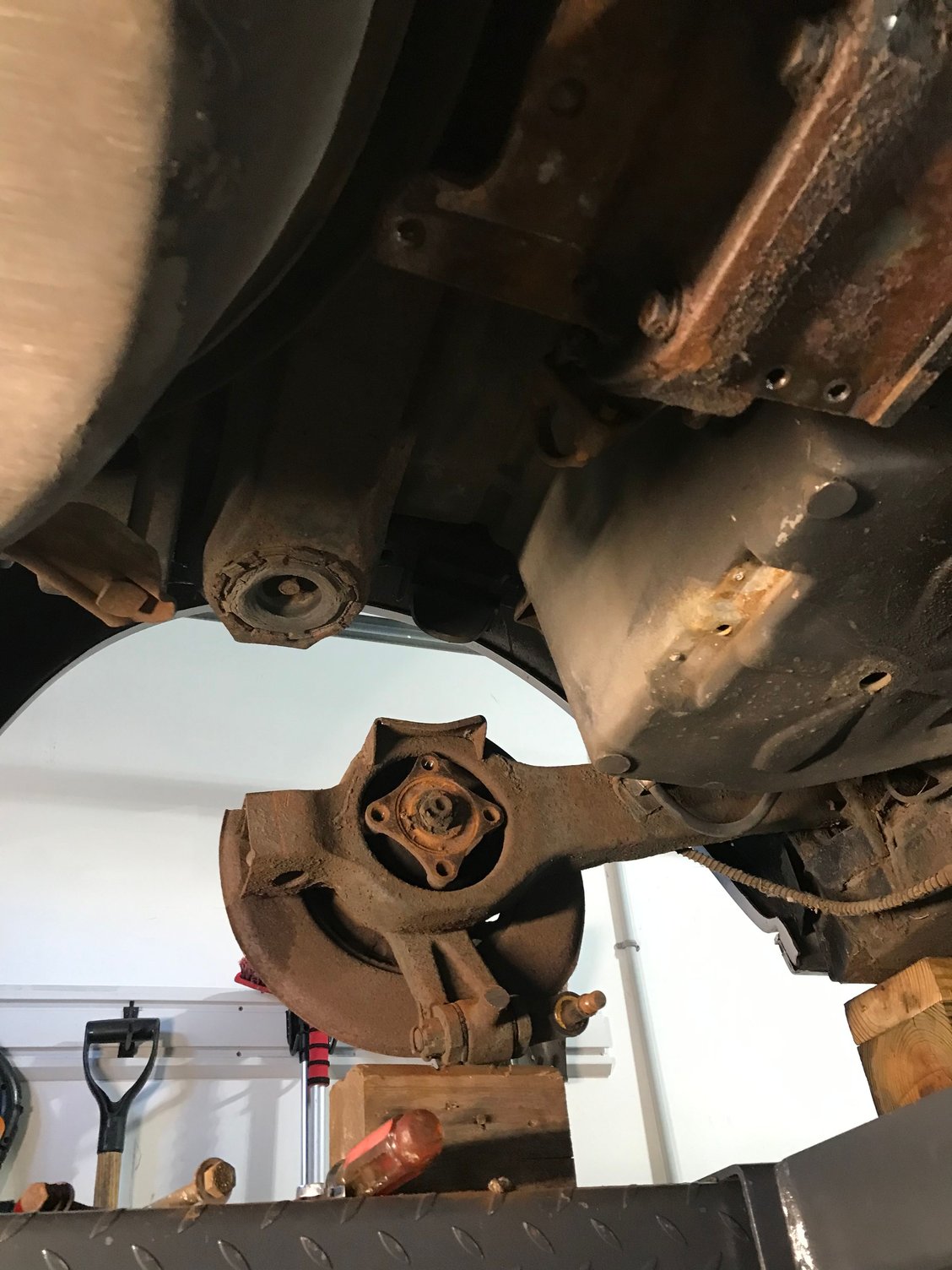 These strut rod bushing have about had it. All that’s left is to remove the trailing arm. I’m sure the sawzal will have to be used. Here are the parts that came off today.