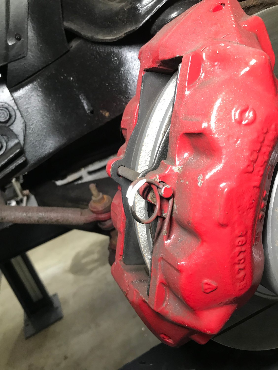 Left front caliper. Why take the time to find the correct cotter pin when any old thing will hold the pin in place. It was rubbing the inside of the wheel. This would have been gone in another couple of miles. Why do people think this is OK.