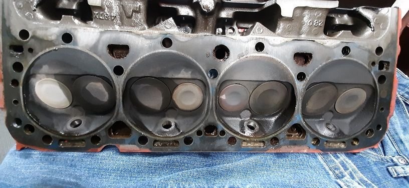 I speculate those heads may've come with smaller 1.94"/1.50" valves but shop installed 2.020"/1.60" ... common practice, typically improve flow