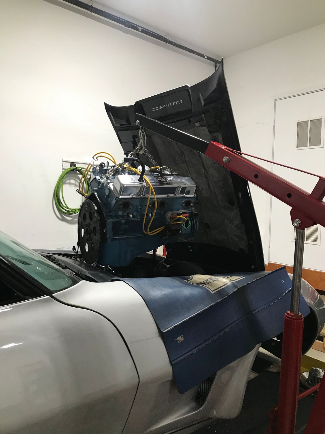 I recall reading your thread about how you pulled your engine by yourself and that's what I'm doing as well. Done it before but never on a vette. I pulled the rad because I've got an aluminum rad to replace it with. As an aside, I wasn't going to remove the hood but as I've got a new parallel flow condenser to replace the one that's in there it looks too tight to get it out.