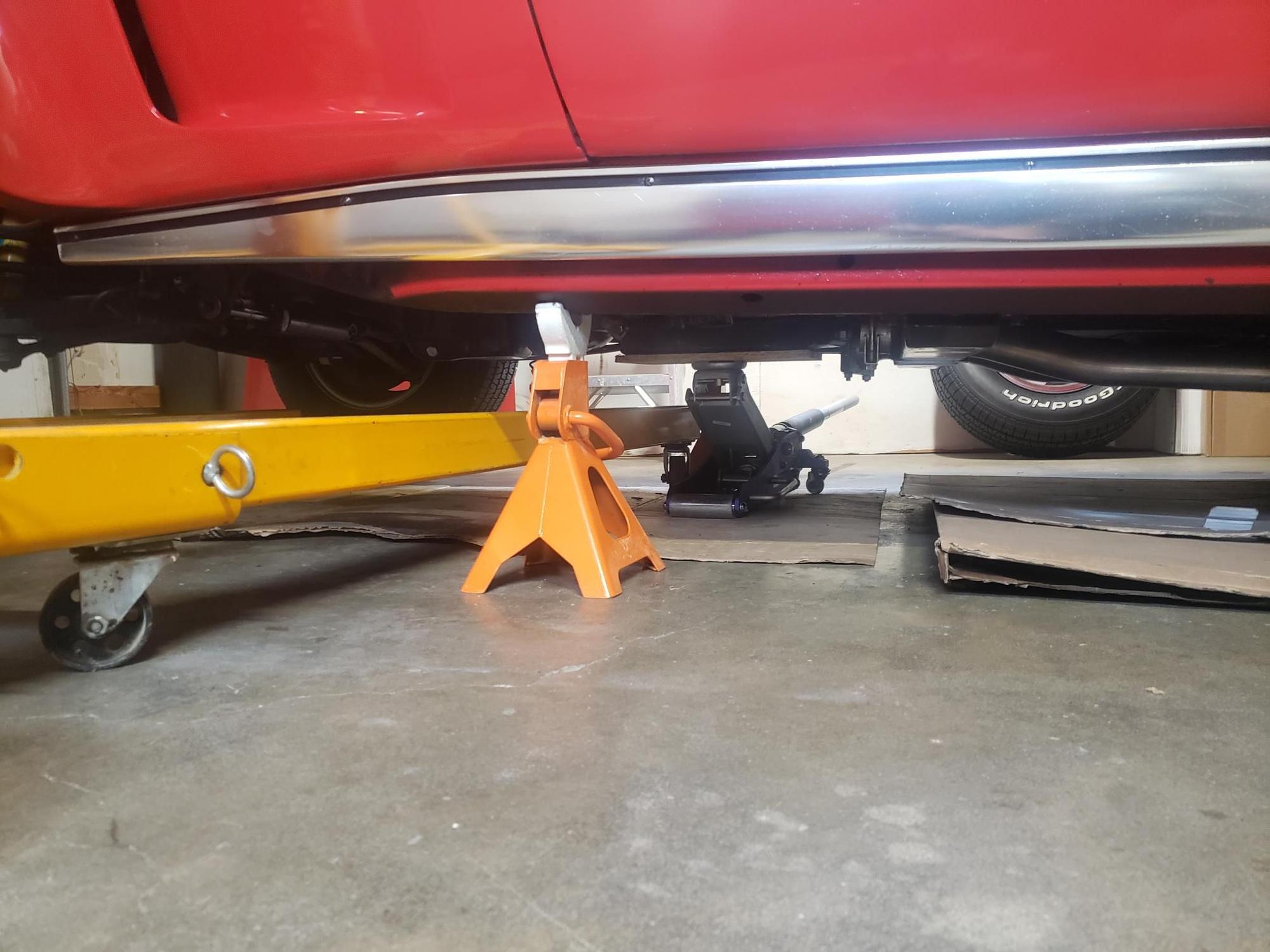 Got 2nd smaller lift with board under trans pan to hold it up after engine is moved forward.