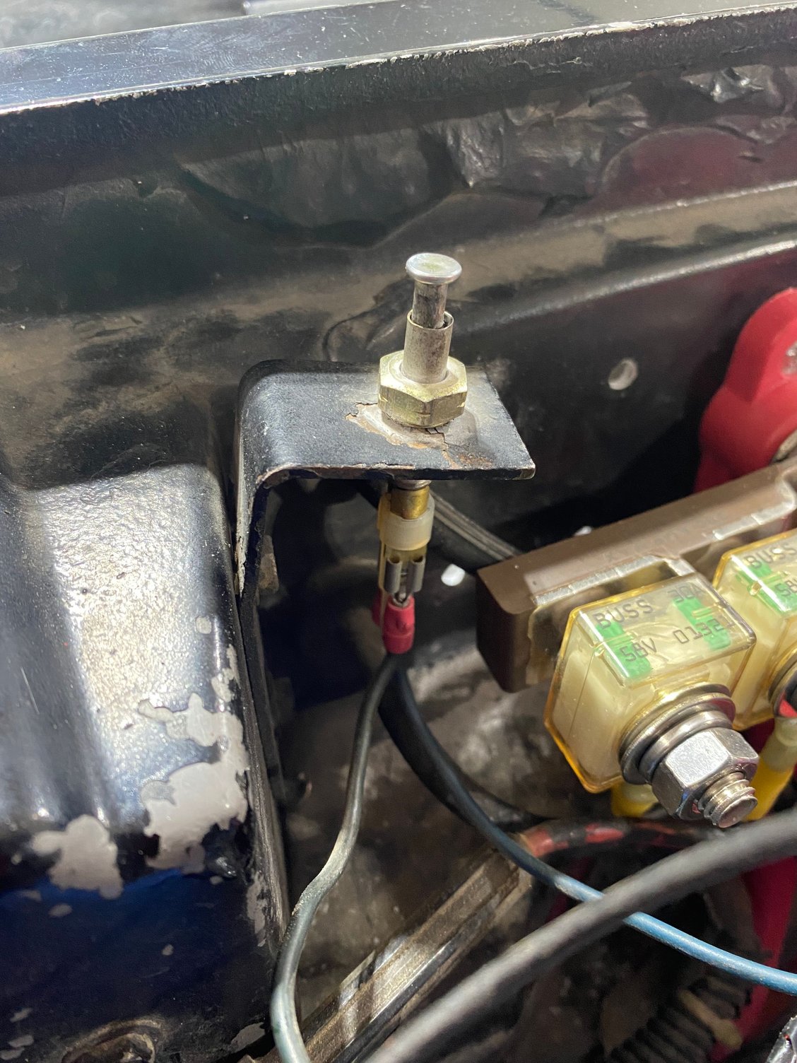 Good evening. I am sure someone here knows what this switch is for, if I were a betting man I would say alarm system. Had to quit working on it before I could trace wires. I have alarm system switch on left fender, I do not have a key for it, one of the wires off of it followed speedo cable under car and was cut off just past firewall, from earlier education on here, i thought I remembered reading that horn for alarm was in rear fender. Thanks in advance