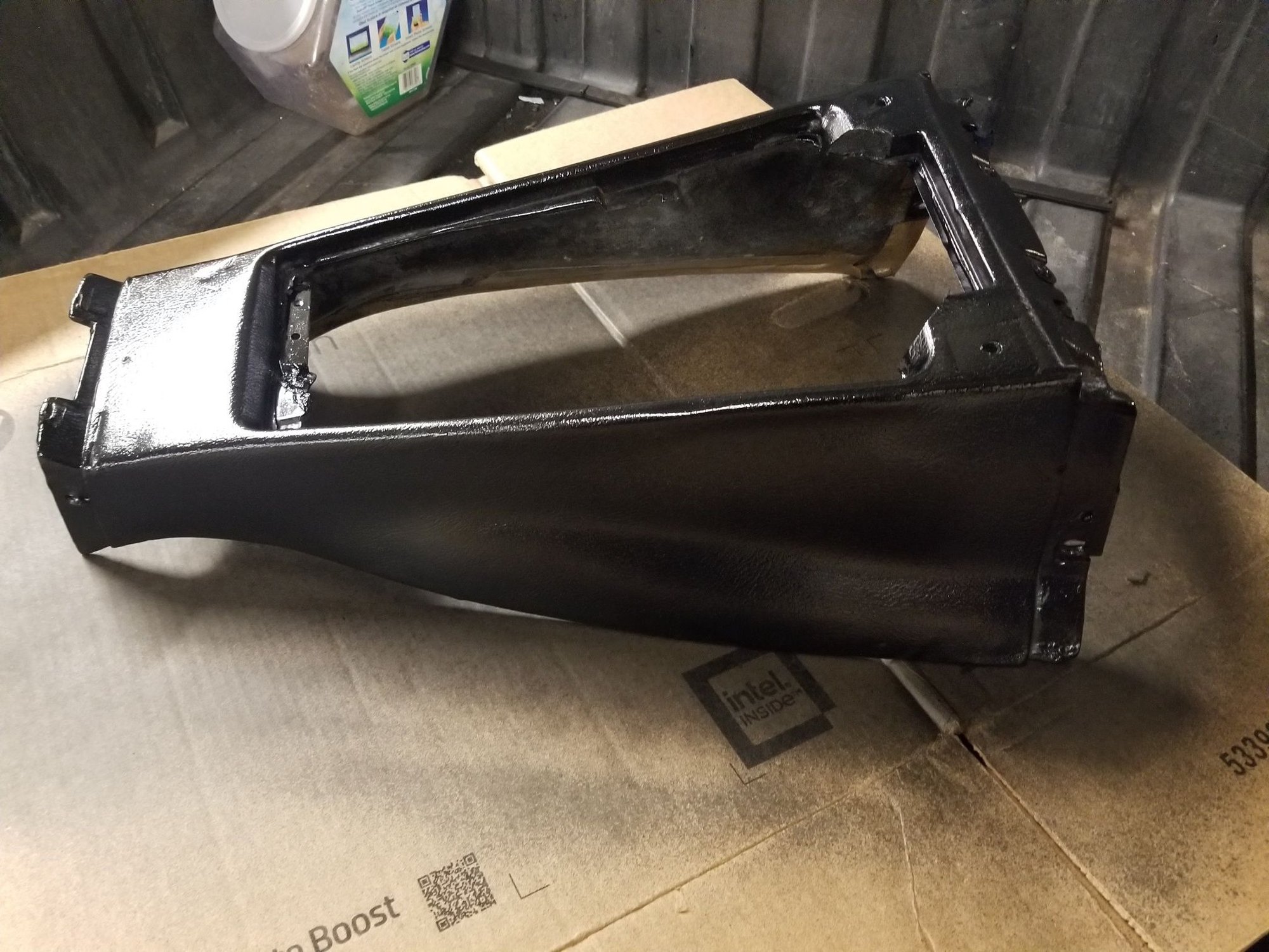 While putting it in I gave a quick thought on the center console, knowing I don't have the ability to make the offset shifter for the TKO 600 and I have a bunch of material left from the door panel experiment, So I decided to make a center console cover.