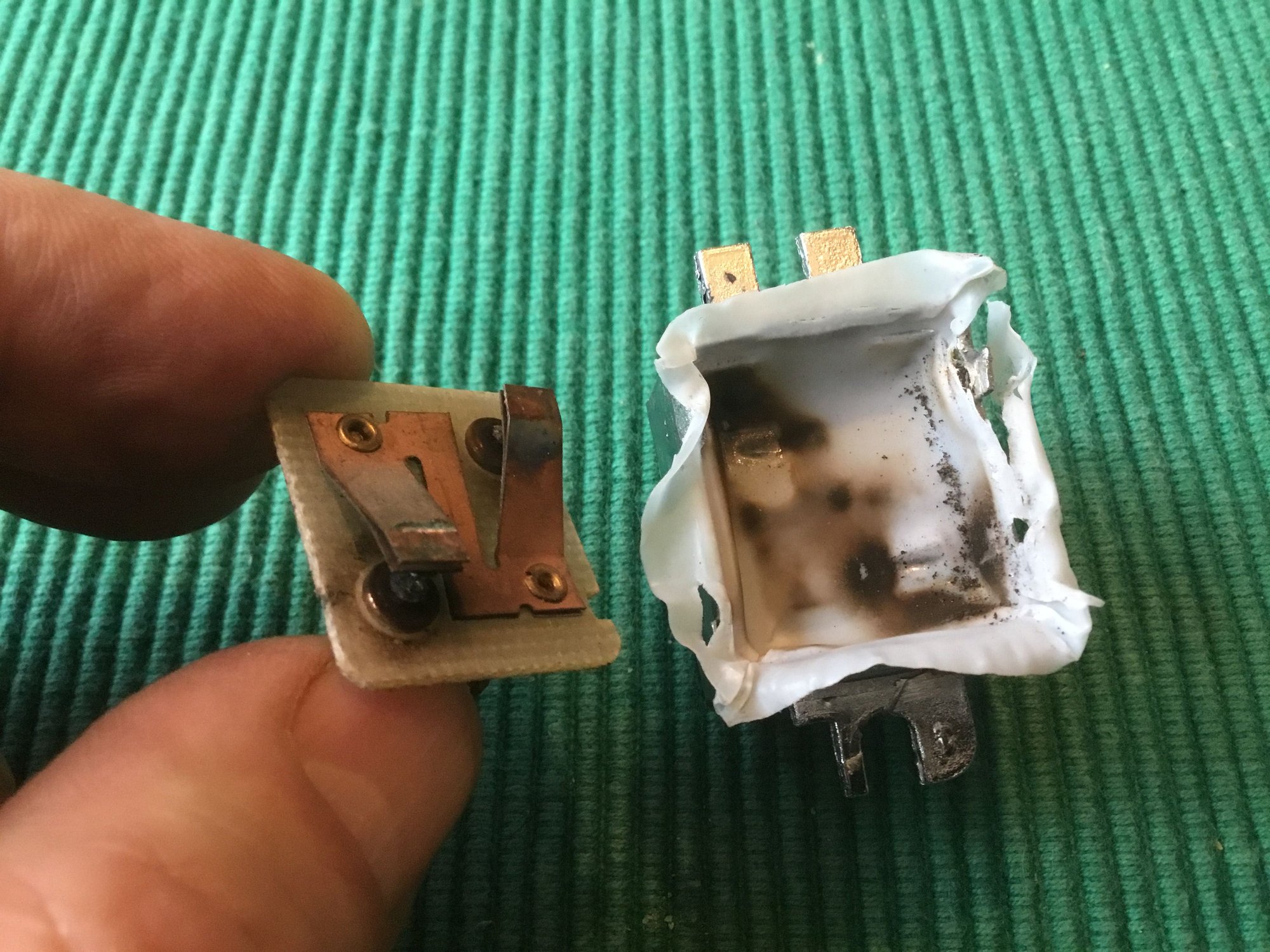 Someone added a plastic shield to keep dirt out. Scorch marks from arcing.