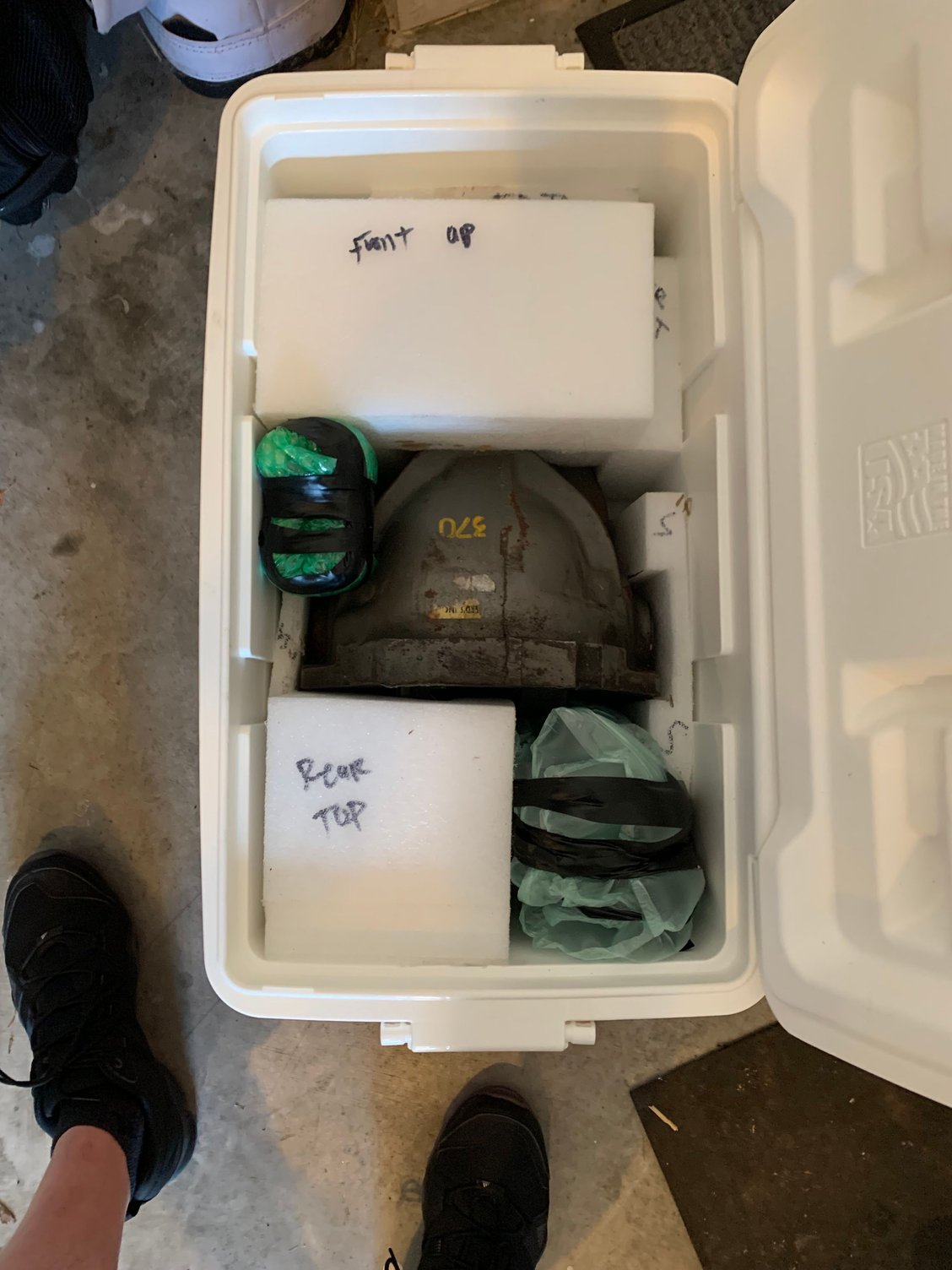 I went down to Walmart and bought the cheapest cooler I could find that would fit it all then stuffed it with foam to hold everything. I then taped it shut with duct tape and shipped it via UPS using Shippo. I believe at the time it was around 50 bucks each way but I’m in Missouri. Worked like a champ.