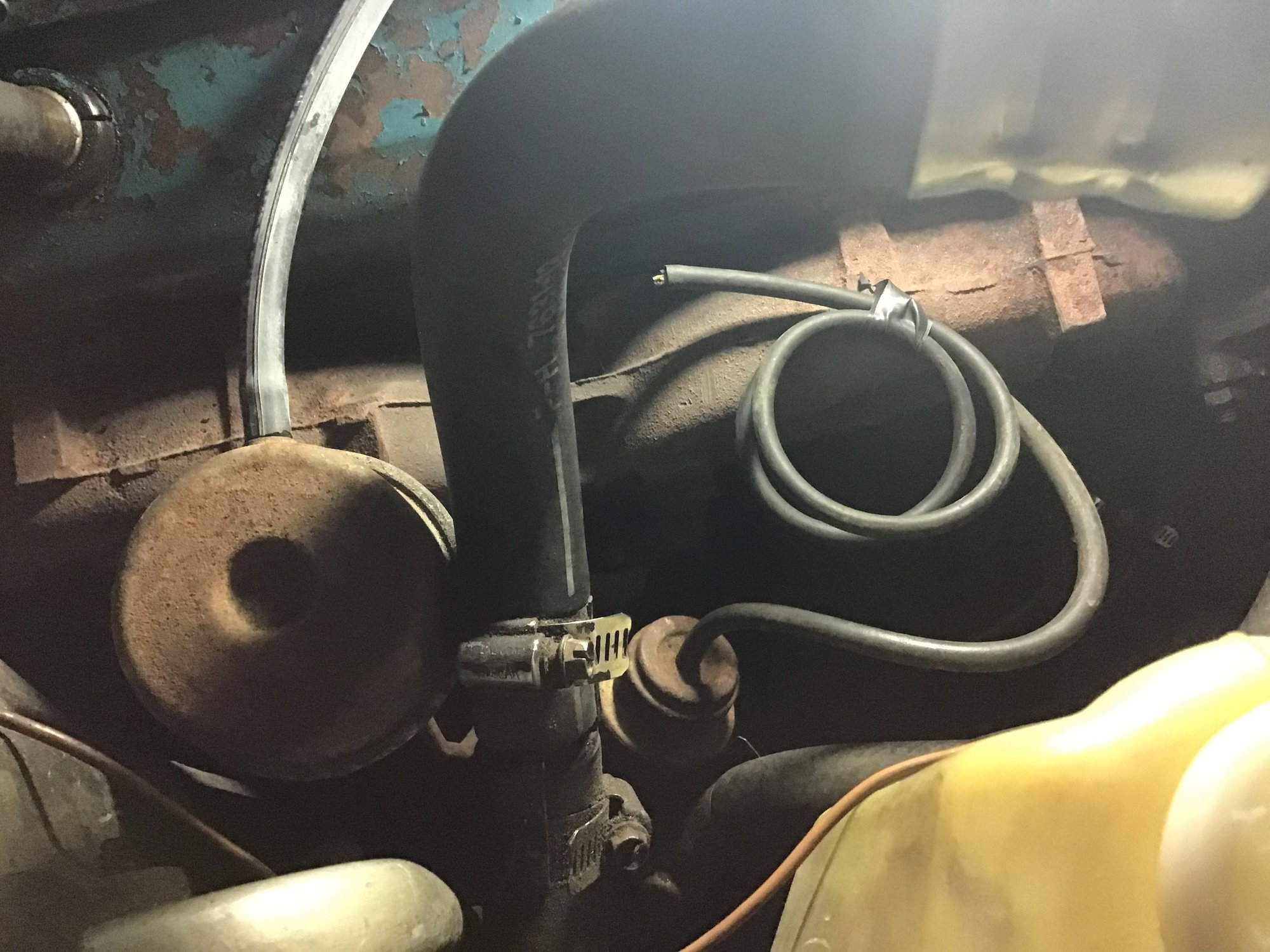 If you follow on post #4 drawing after the firewall that White poly tubing land at the Vacuum Operated Water Shutoff Switch that is on top of the heater box..