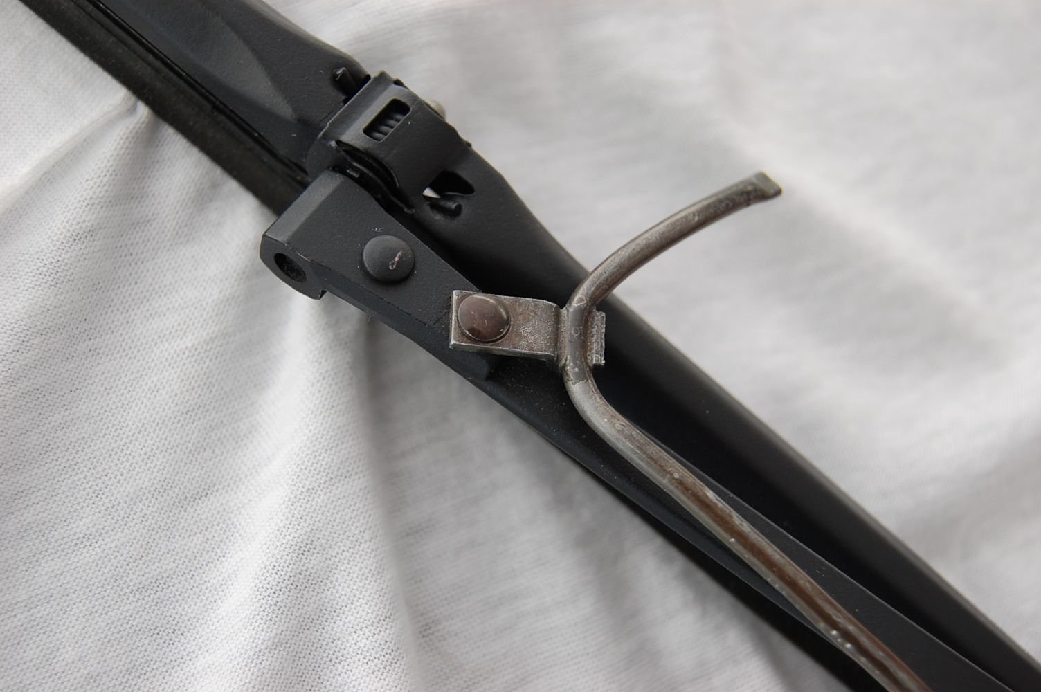 By 70 (maybe 69) there were long copper tubes with a nozzle attached to the wiper arms by solder/rivits and tiny plastic clips. Hoses ran from the pump to the tubes.