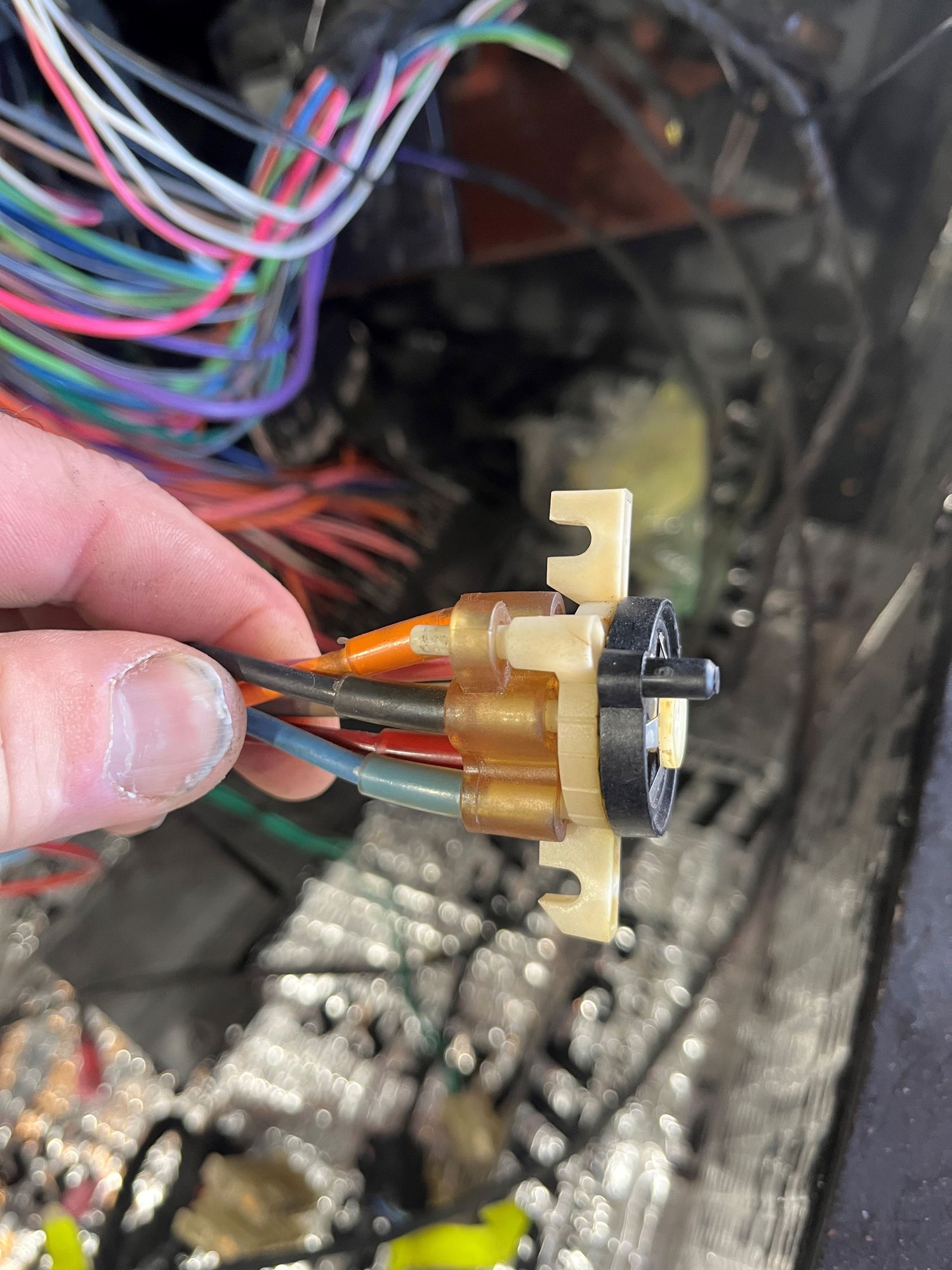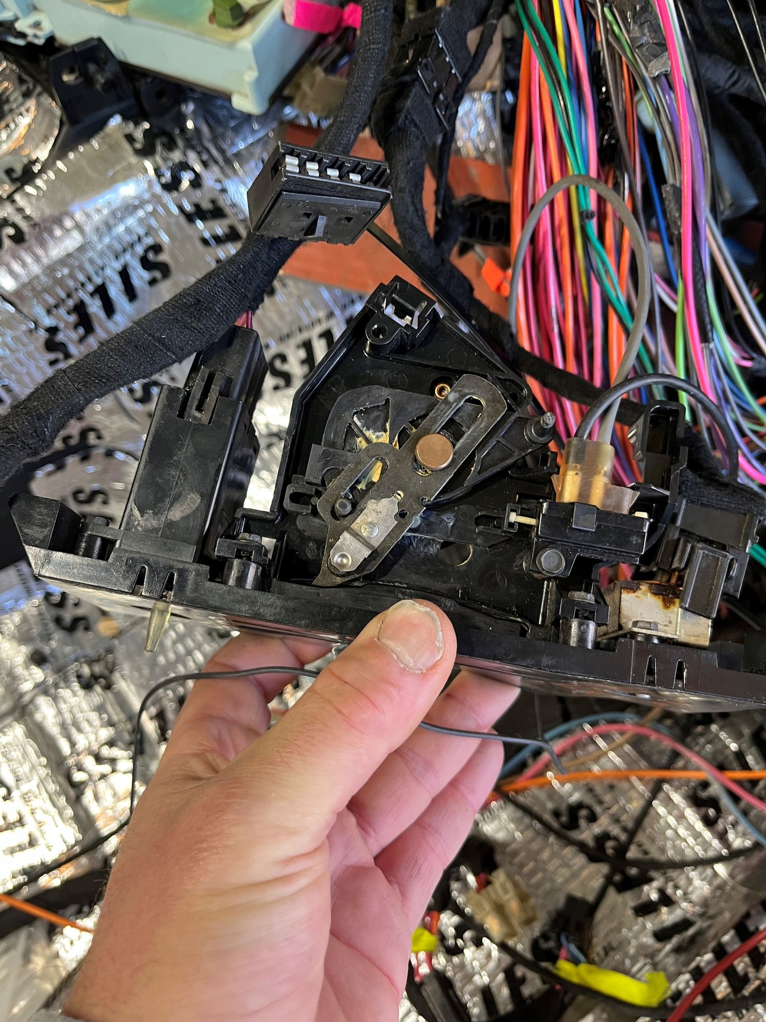 That plugs into the back of your heater controls. Changes where the vacuum goes to open and close doors in the AC/Heat system.