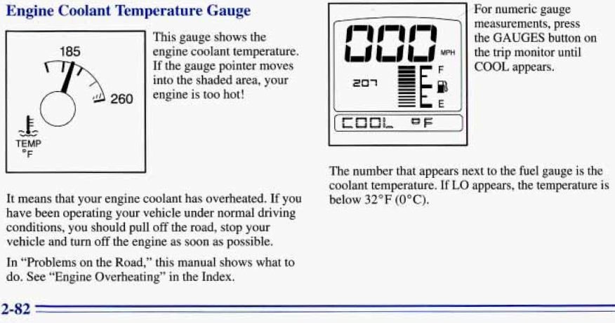 1996 LT-1, the analog gauge in the dash is functioning. When I press the display button for the digital display it shows: "Cool 0" regardless of temperature. Am I correct that the sensor for the digital gauge is in the thermostat housing? Best way for me to test the operation of the fans on this OBD2 system? Thanks for your input on this!