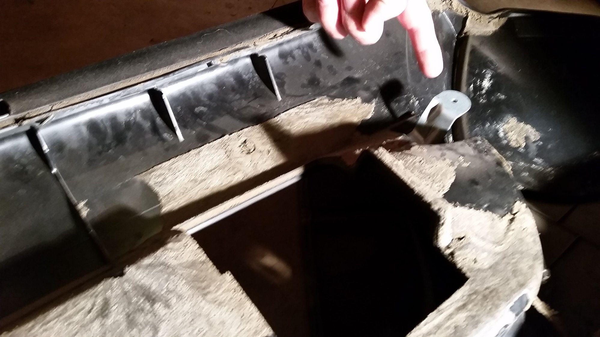 Does this amount of "offset" Or "protrusion" look right? In the foreground (dark/fuzzy) is the top of the door panel and you can see the bottom on the "horizon", allowing you to see that that protrusion sticks up (in toward the door) about 2" more than the top and bottom of the panel...
