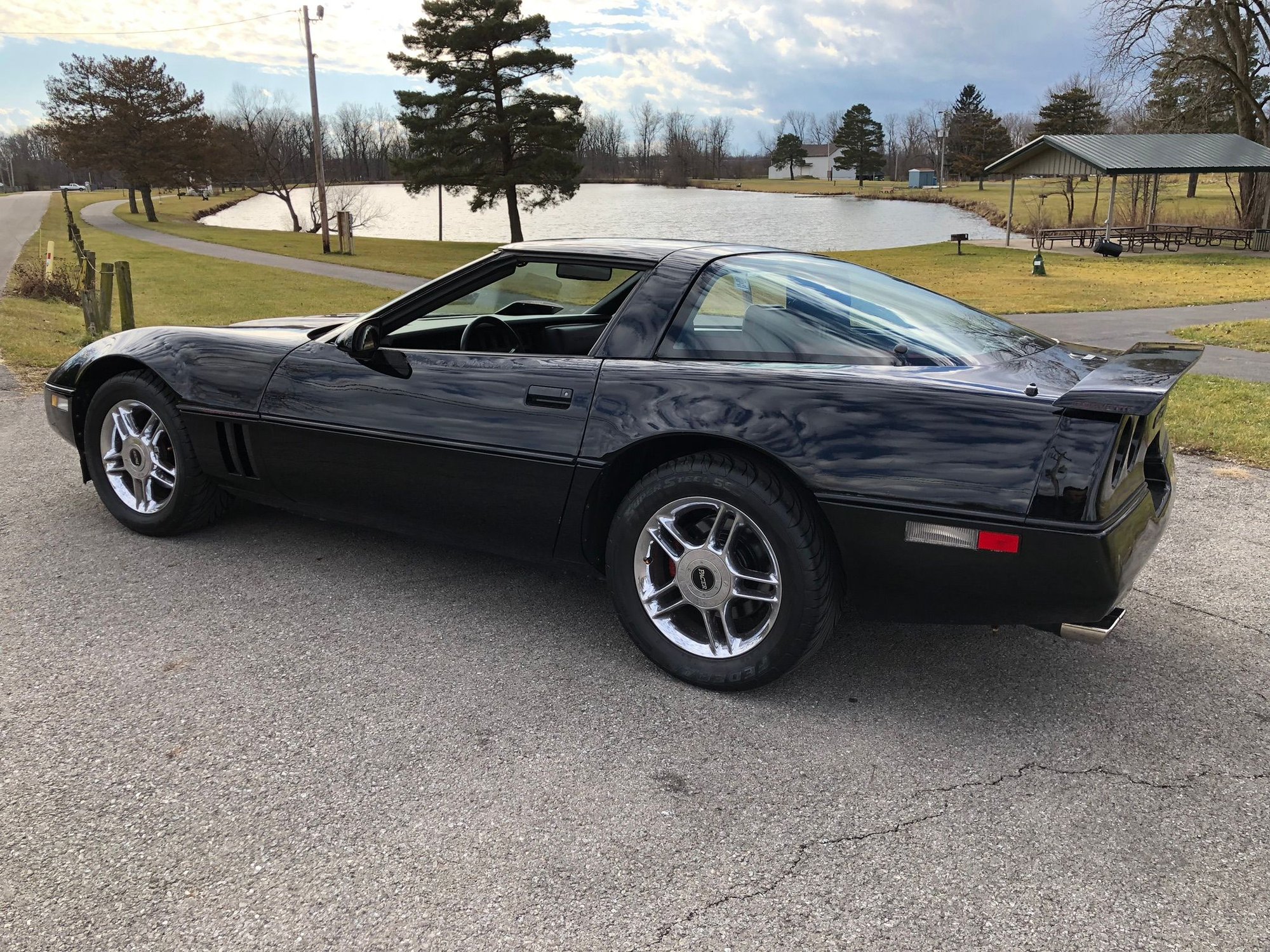 Finally, there's the matter of appearance. This is obviously a matter of opinion rather than fact. But that purple car as well as the green car you posted pics of both look ridiculous to me. They look like caricatures of C4s, like people used to airbrush on hot rodders' t-shirts in the 1970s. A C4 is a teeny and perfectly proportioned car in comparison to C5+ cars, and doesn't benefit from the ginormous diameters that modern cars need in order to hide their ponderous proportions. The following pic is my car (recently sold to a friend) on 18x11 wheels with 315/30/18 tires front and rear (25.6" diamter). Do you really think the purple and green cars look better with their oversize rear wheels/tires? I can guarantee you they won't perform nearly as well! 305/30/19s would have 1" taller wheels and 1/2" more tire diameter than mine. You be the judge.