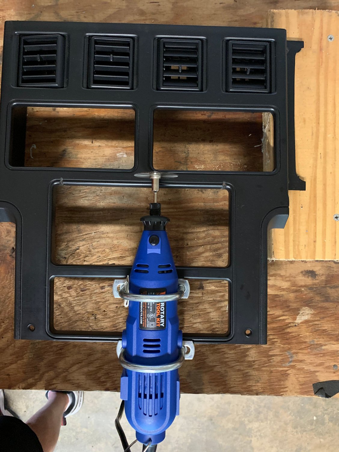 U bolts to make the guide and the bezel openings to make the straight cut. And the largest dremel cutting wheel to reach down to the plastic.