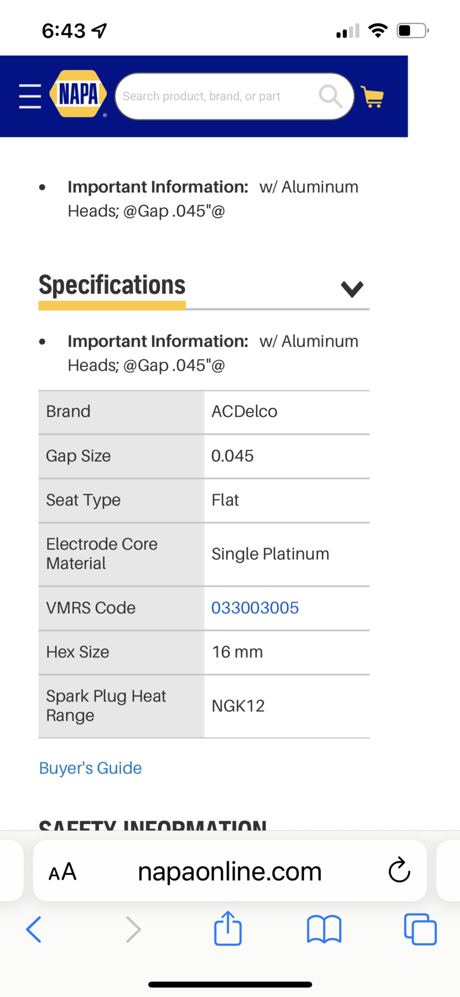 Here’s one of the parts sites recommending 0.045 gap for aluminum heads & specific to my vehicle.
