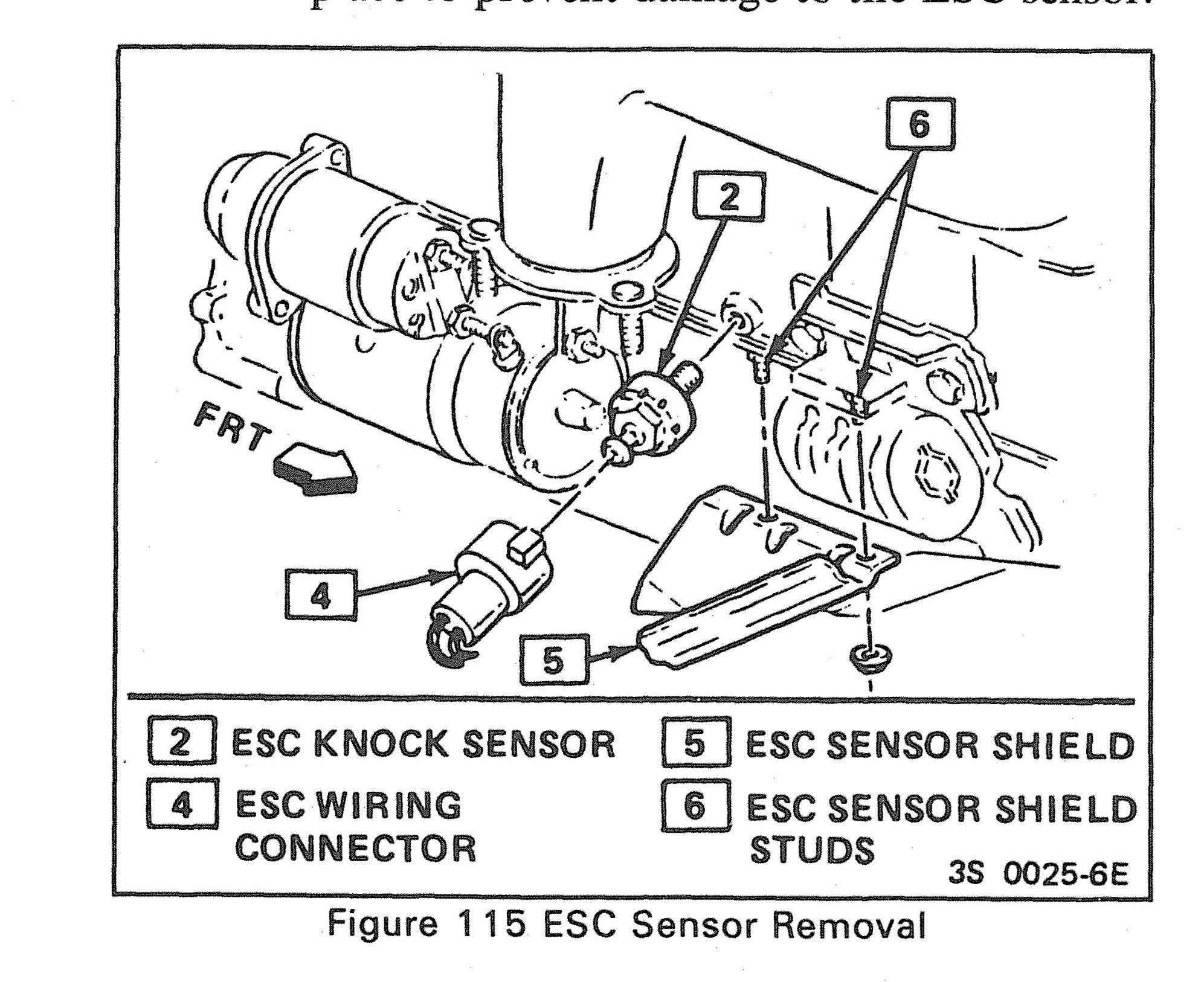If you have the same 1985 FSM that I have, there is a picture of the location of the knock sensor on the passenger side on Page 6E3-107. Section 6E is Driveability and Emissions Fuel Injection (Port).