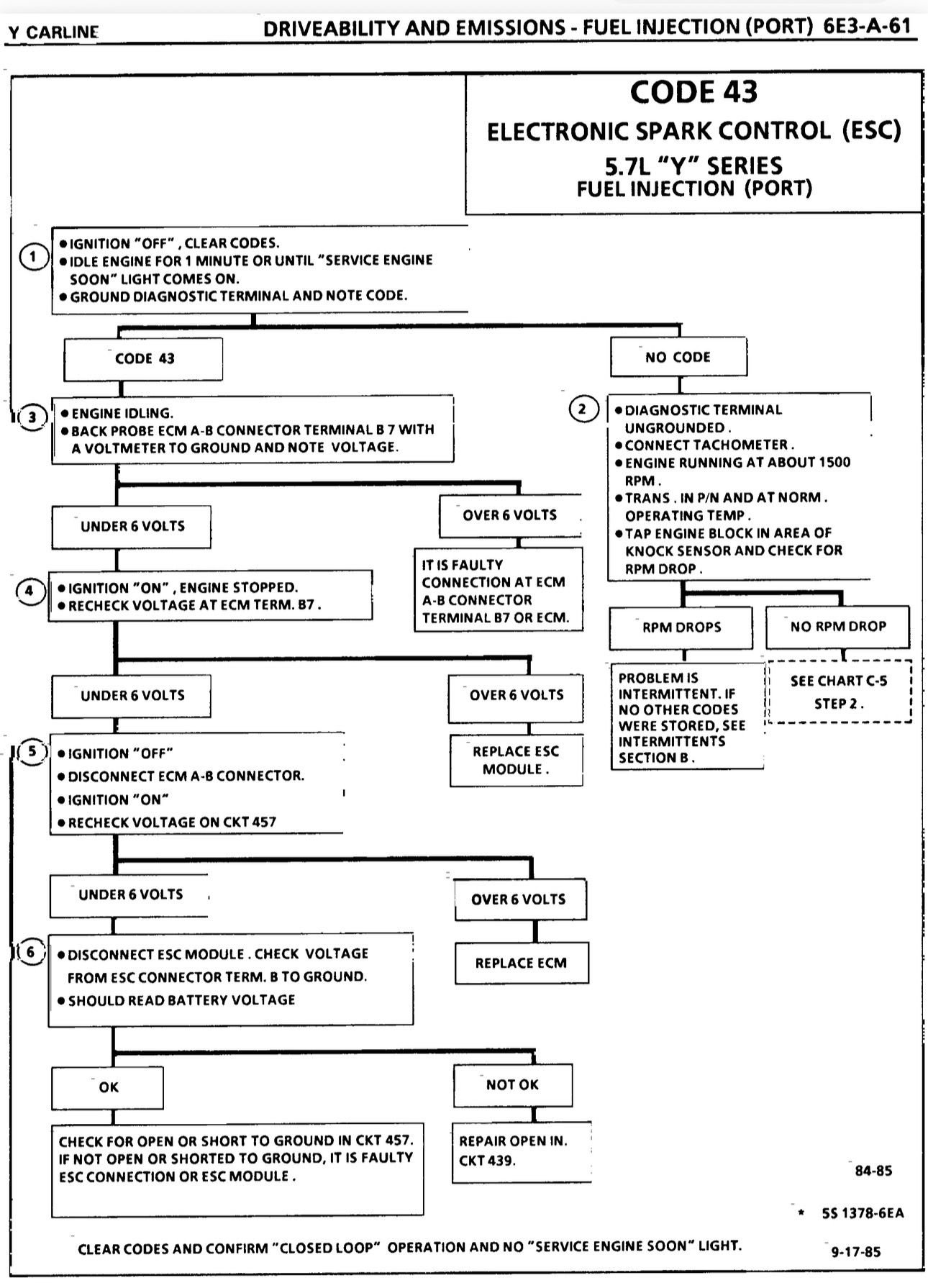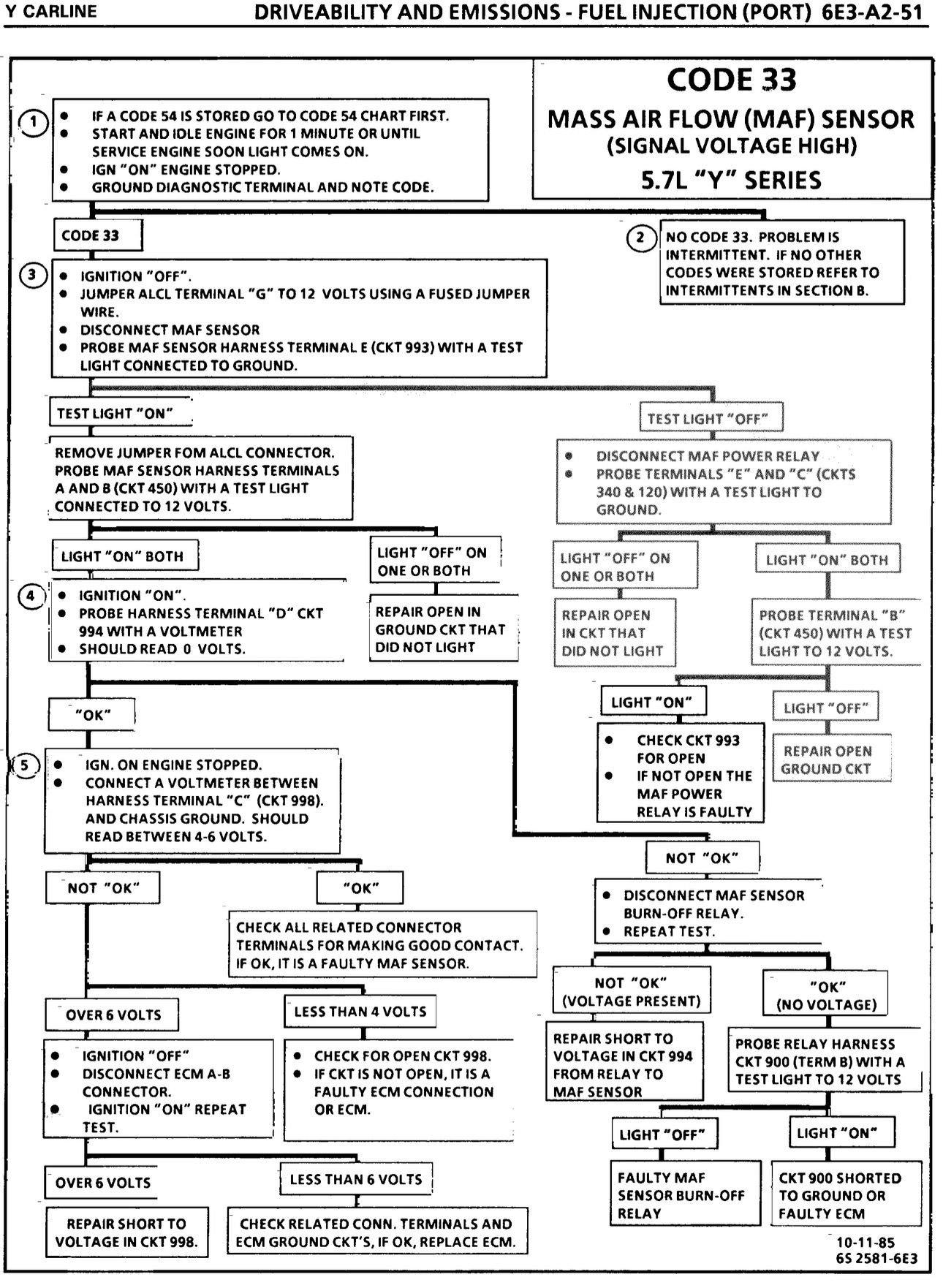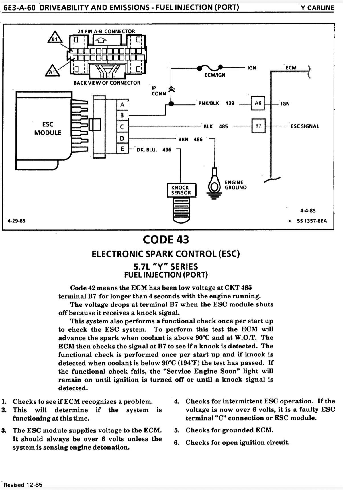 My 1986 Corvette drives fine at first, but after a little bit the check engine light comes on and it goes into like a limp mode and will not go over 20 and when you give it gas it want to stall and back fire. If I shut it off for about 30 seconds and restart it, it drives normal again but then the same thing happens. It’s throwing codes 33 and 43. The light doesn’t come on right away, only after driving for a short time and the goes off when turned back on.