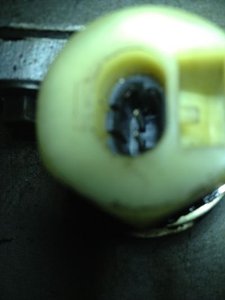 The Chrome Dipstick Handle (5/32" Diameter Allen Head screw with 2.5mm hex Allen head) was then installed using several small brass washers (approximately 5/32" ID) to secure/compress the existing shaft between the two halves of the New Chrome Dipstick Handle.