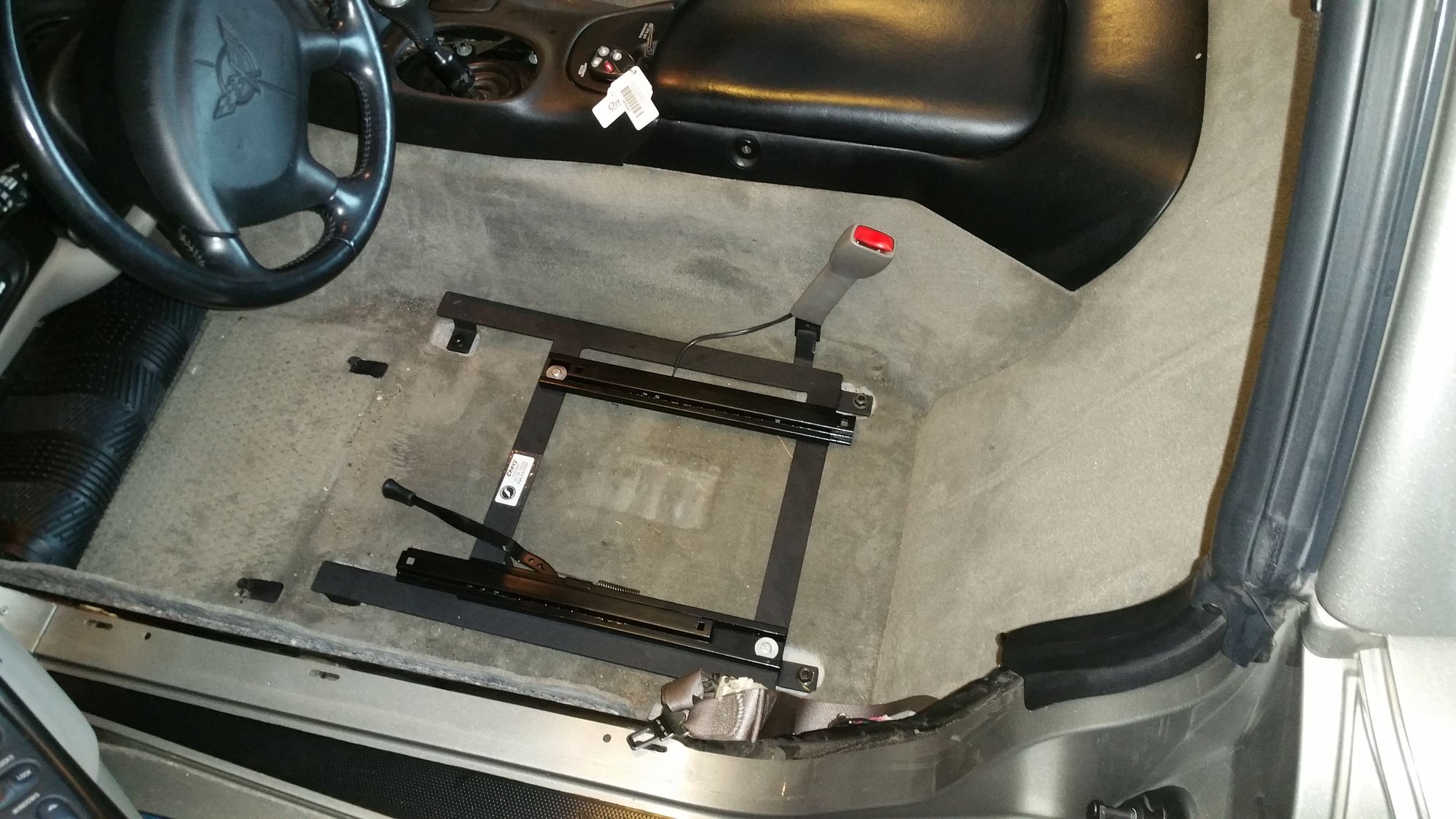 Now with my new six speed installed I was taking corners a lot faster and was spending more time trying to stay in my seat than I was actually driving. After reading an article by SuperChevy titled "30 minute seat conversion" I ended up settling on a seat of Corbeau Evolution X seats. Like with anything else seen on the internet, I ordered the exact same parts, and it certainly did not take 30 min. Maybe because the car the used was a Z and mine isnt? Who knows. Anyways it was a simple fix, I had some minor rubbing and and to drill out some new holes. The PN I used for the bracket was E1502F (driver) and E1053F (Pass) Huge thanks to a write up by toquez06
