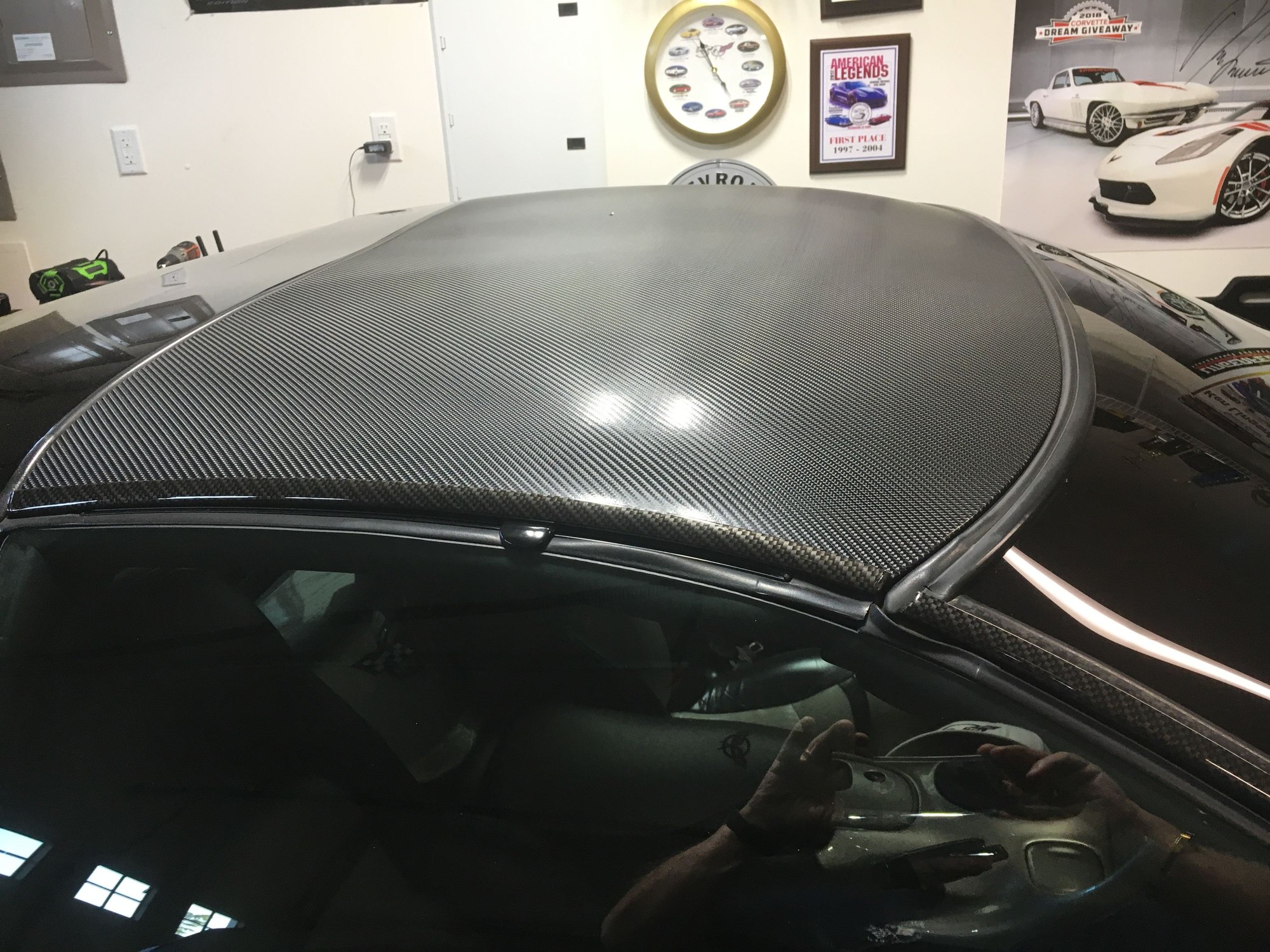 I saw a close friend today who had his targa wrapped with a 3M Carbon fiber vinyl and it looks terrific. All you need to do is sand the top smooth so no texture will show thru and it will look great. His was professionally done. I’ll ask him for a picture of it and post it here.