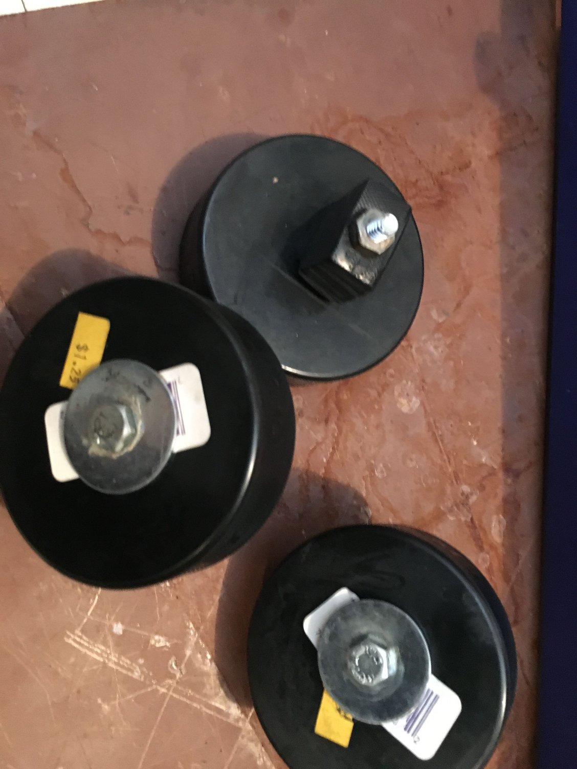 A hockey puck and a eye bolt screw is all you need - for $5 in parts just make your own - it's not even a discussion as to what should be done...