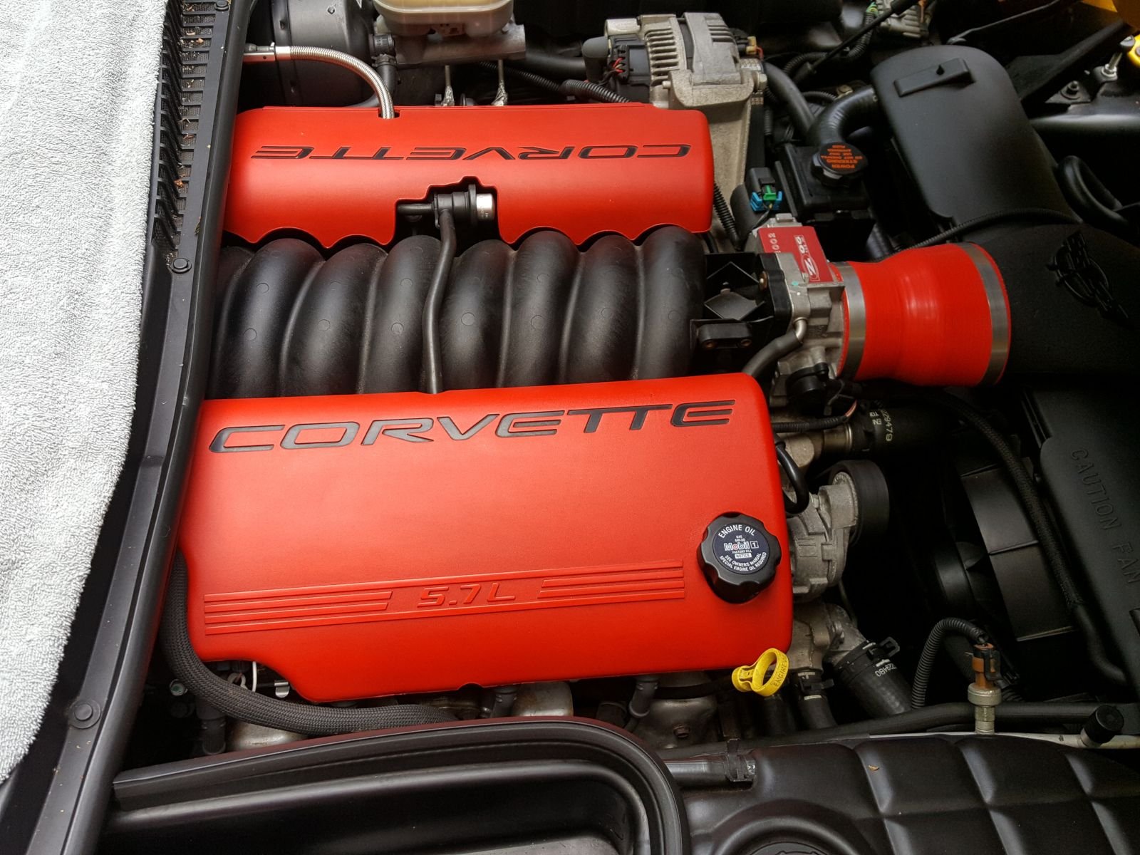 I have the Meguiars exterior detail spray that I use to touch up the exterior between washes. I'll use a tiny bit of that on the microfiber cloth to keep the top bits in the engine bay clean. I don't overdo it, just a spritz or two. Doing that whenever I clean the exterior keeps the engine looking presentable, but not overly shiny.