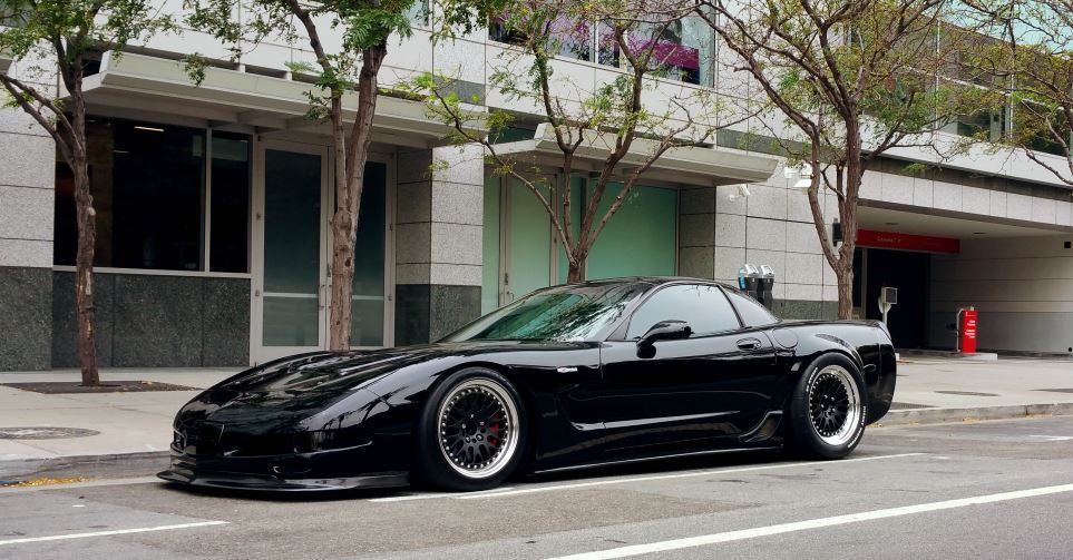The rear wheels are certainly wider as the black car is running flared quarter panels which many folks use in order to get the look right; wheels that poke beyond the fenders usually look terrible.