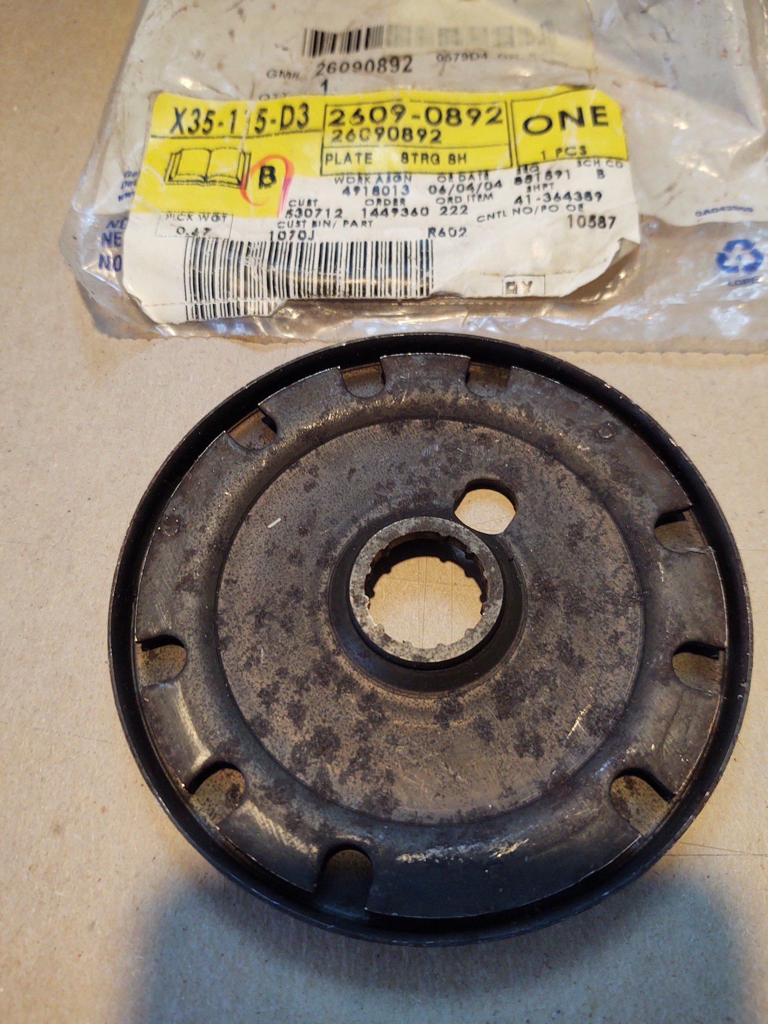 This is a picture of the backside of the C-5's steering column "lock ring". The "cutouts" around the perimeter of the part, are the places where the lock pin can engage, and lock the column. About 18-20 years ago, I purchased a second lock plate, checked it in a lathe, and trimmed off the area where these cutouts are, then installed it on my car.. Between this mod, and the LMC5, I no longer have to be worried about my column locking up.