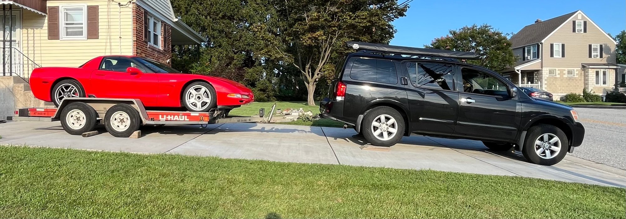 I've taken my Vette all over the country with a U-Haul Trailer up until I got my own. If that track hauler option that Erikf555 posted is available, I would definitely use that. The ways I've tried, I've never had to climb in through the window. But from my experience here's what I learned: