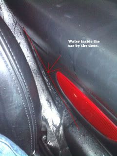 I got sick of adjusting the receptacles (the things that look like cones that take the "*****" on the back of the targa top), putting the top back on, hosing it down, going into the car, looking only to find a leak. Wiping it back up, repeating the process. Probably spent 3 hours doing this