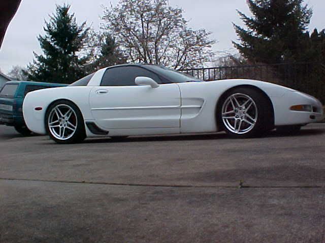 I was scraping everwhere I was going including my driveway. The vette was lowered by the previous owner, so I raised it back-up and installed A&A rocker rails and wheels on the front.