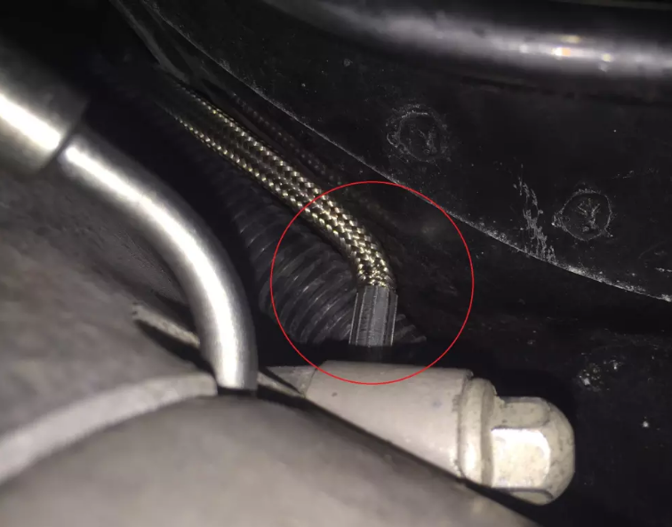 I ordered the kit from Speedway Motors. As designed, it forces the end of the hose where it goes into the fitting against the top of the TT tunnel, causing a bend in the hose (see red circle in pic).