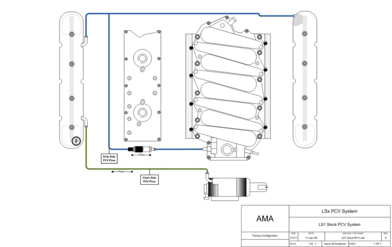 Here's a diagram I found of the system. The blue lines are hooked up like stock, and would be pulling a vacuum since they're connected to the IM. The green line is the line in question. looking at the flow direction arrows, it seems like it's pulling filtered and metered air from before the throttle plate, through the crank, out the two read breathers, through the PCV and into the intake manifold.