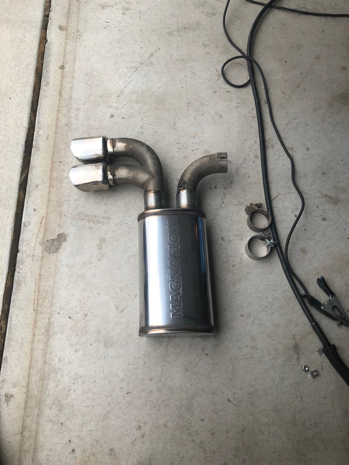 I recently picked up a Z06 roller and have been going through to make it a decent daily driver/ toy. Fast forwarding to exhaust, it had some cheap looking offbrand setup on it that was just way too loud with my setup (6.0, 232/247 112.5 cam, longtubes, and off-road x-pipe) so I set out to get something that sounds good on it. I am a HUGE fan of doing everything myself and I do not outsource for anything except block work before assembly so I started looking at companies that make same side in/out mufflers and came across the Magnaflow 14210. From there all I did was put the tips on the new mufflers and work the 90* from the over-axle pipes into the mufflers. The last thing I have to do is remake the hanging straps when my new stainless bands get in. I realize that the majority of people are all about buying the “correct” things for our vettes but here is my alternative. I will post a before and after video tomorrow for sound but I absolutely love the low rumble and WOT sound of the magnaflow.