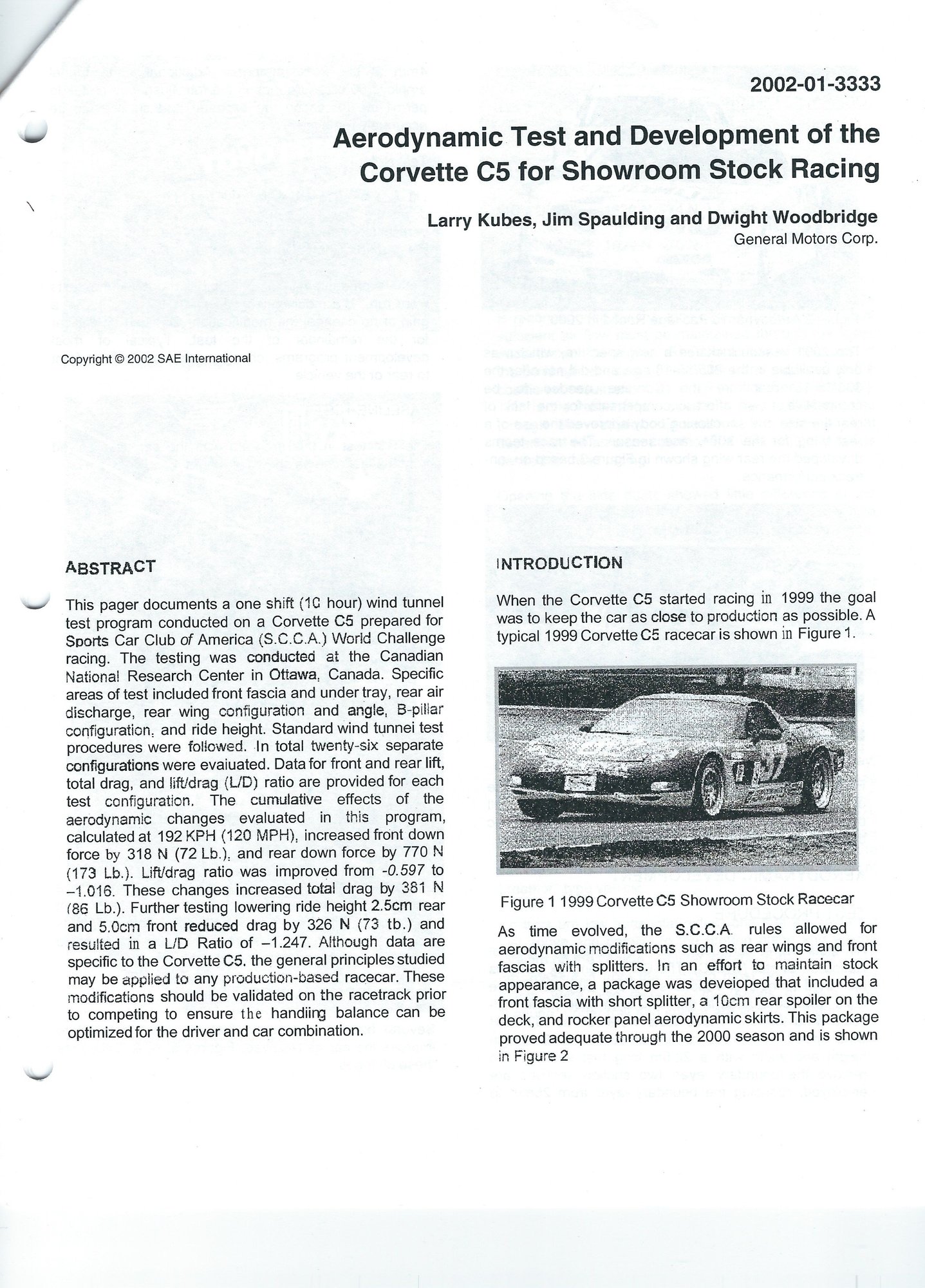 Aerodynamic Test and Development of the Corvette C5 for Showroom Stock Racing