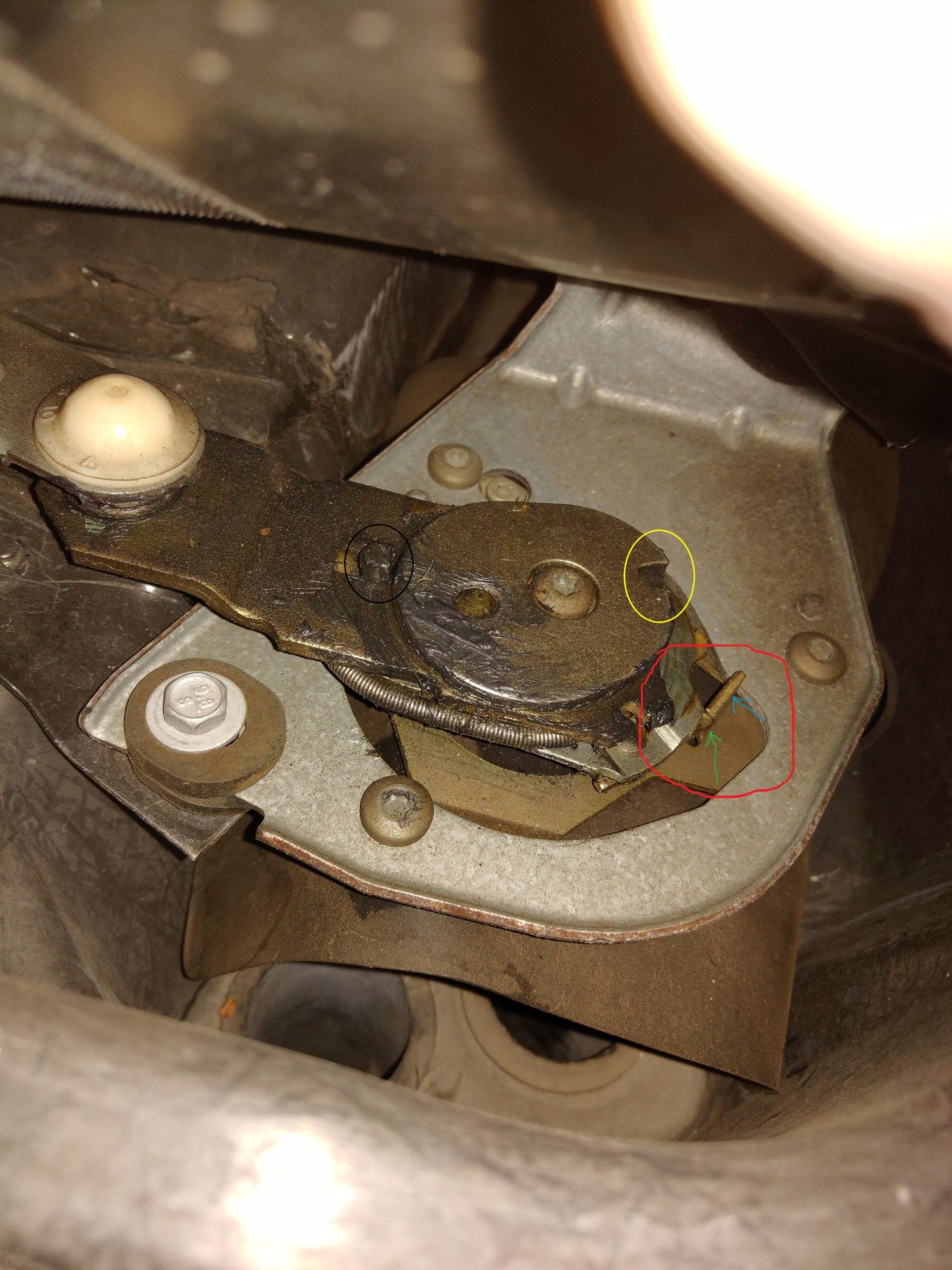 Pretty much all the grease /lubricant on the failing unit was dry/gone. The little spring loaded catch (green arrow) was stuck and not popping out to hit the stop & cause the park action to occur. Some white lithium spray to get things moving & then some grease to keep things good.