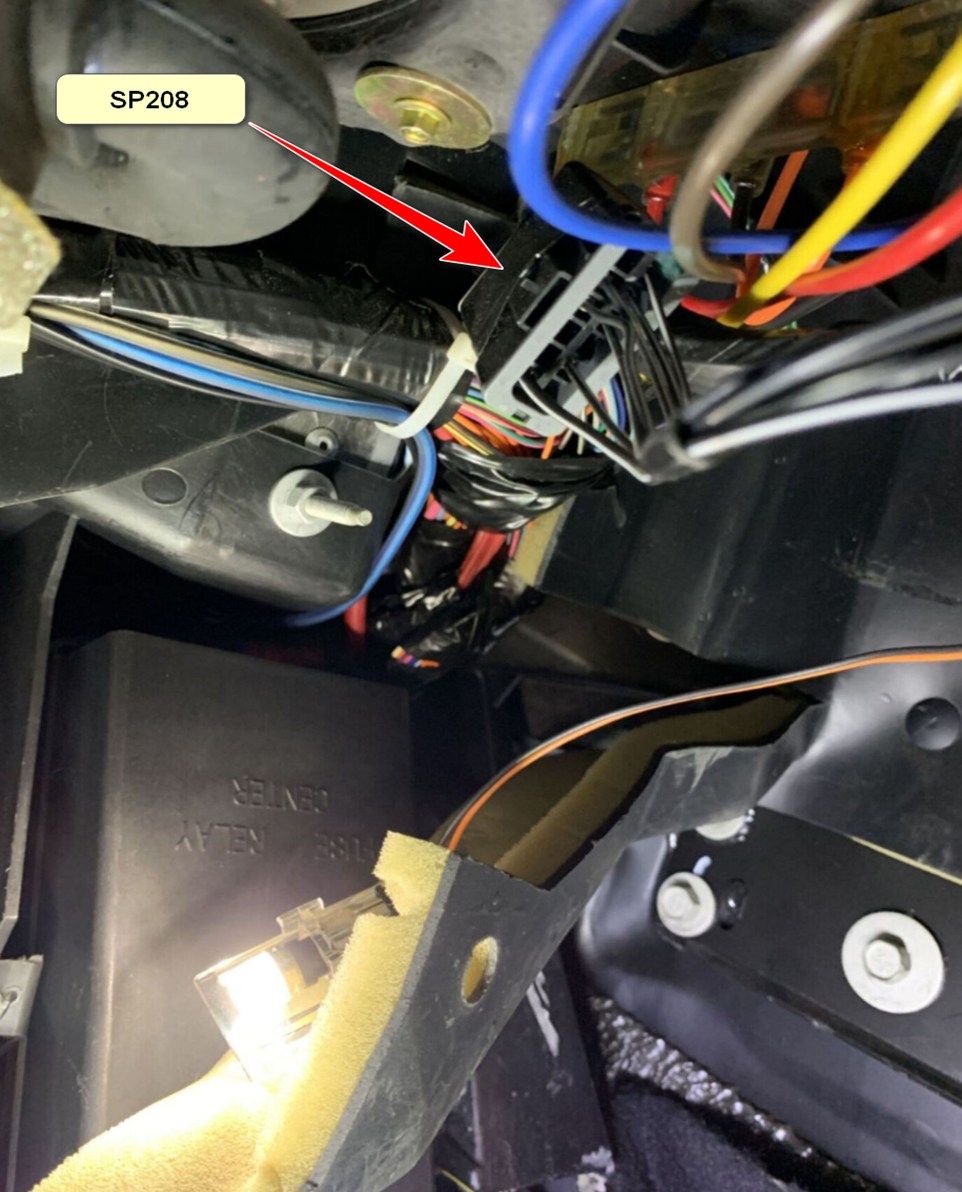 SP108 is located above the BCM as shown in the photo below.
