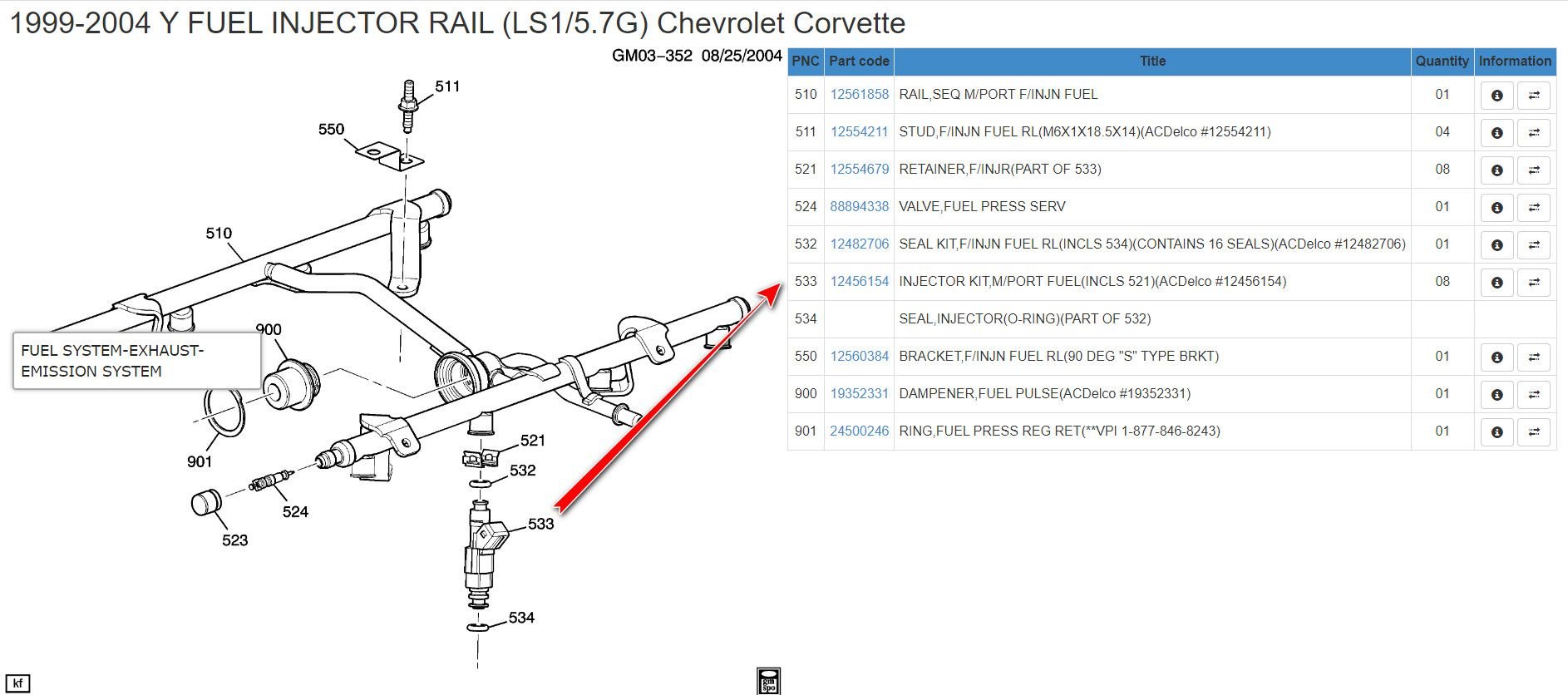 What is the part number for fuel injectors for a 2000 C5 corvette coupe