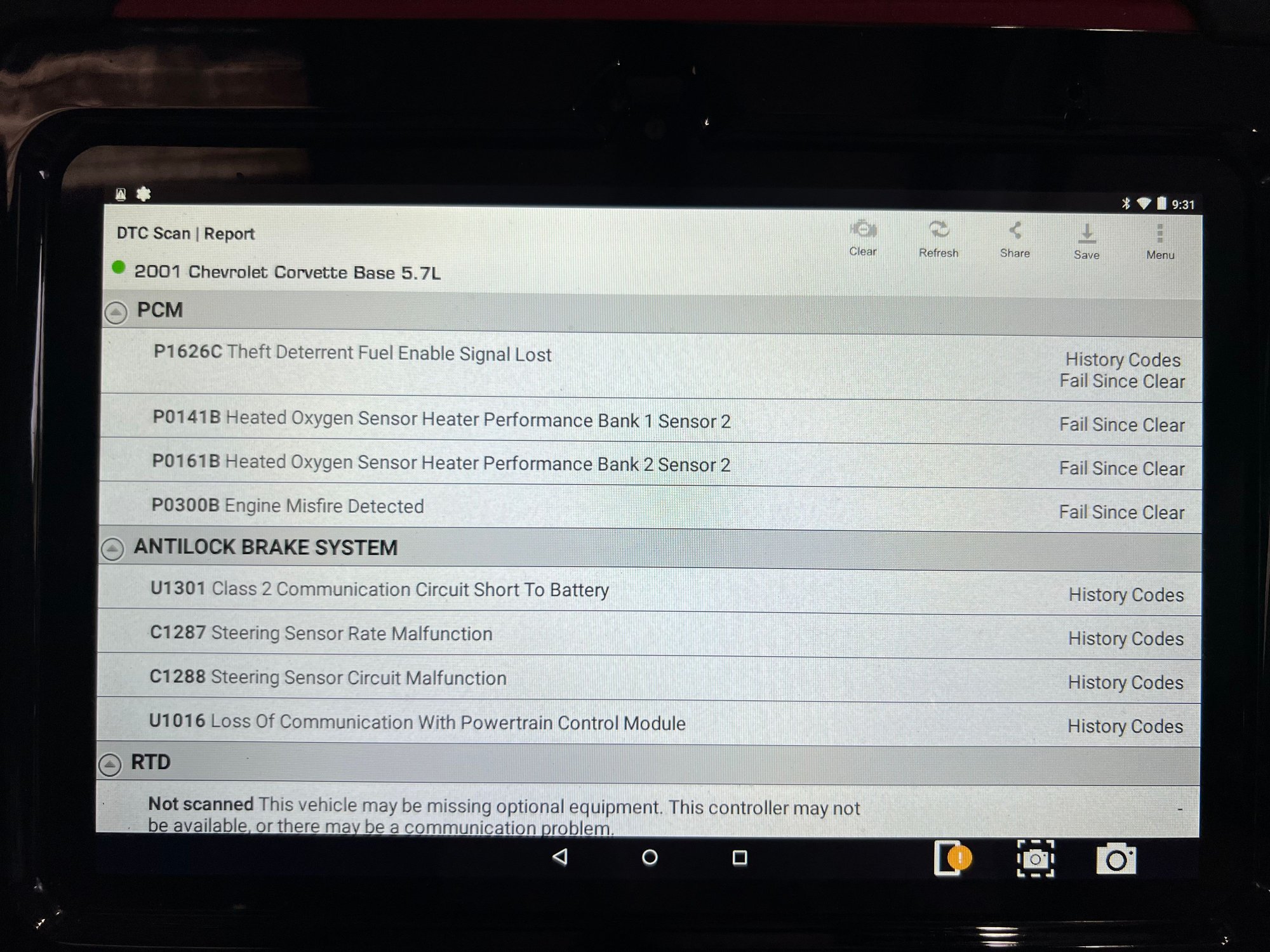 The ones that say “history” you can erase them…actually just write down the PCM codes…erase those too with key on, then turn the key off….start the car again and scan for codes before shutting the car down..if you see any they are current codes…you got P0300 random cylinder misfire, downstream O2 sensor heater issues on both banks and the theft enable code may prevent the car from starting…what kind of work in the auto industry were you involved in ??…and welcome to the Forum !!!
