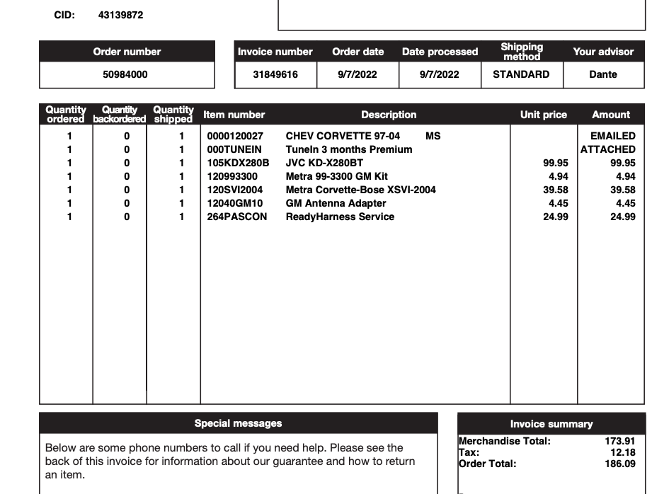 I posted my Crutchfield invoice. There are a lot of options that fit and you need the antenna adapter and the Bose adapter to keep the integrity of the sound system, Mine sounds great. I also had them make the harness for easy hookup. The website will lead you through it.