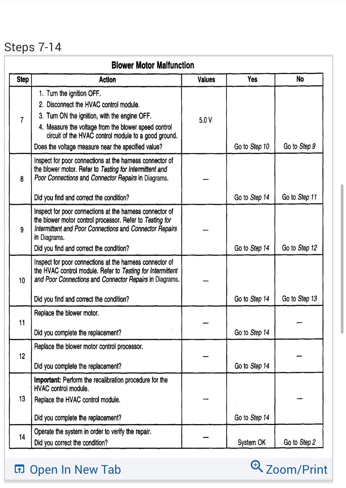 I made it to step 2. Each setting of fan speed works, just not enough cfm's. Step 2 is "go to testing for intermittent and poor connections in diagram......Question is which diagram.