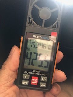 Here are the readings after the re calibrate. I should have taken pre calibrate measurements but my meter hadn't arrived yet.....1st is center vent.....2nd is door vent. Maybe it's just me but I drive my Impala all week and it blows well.