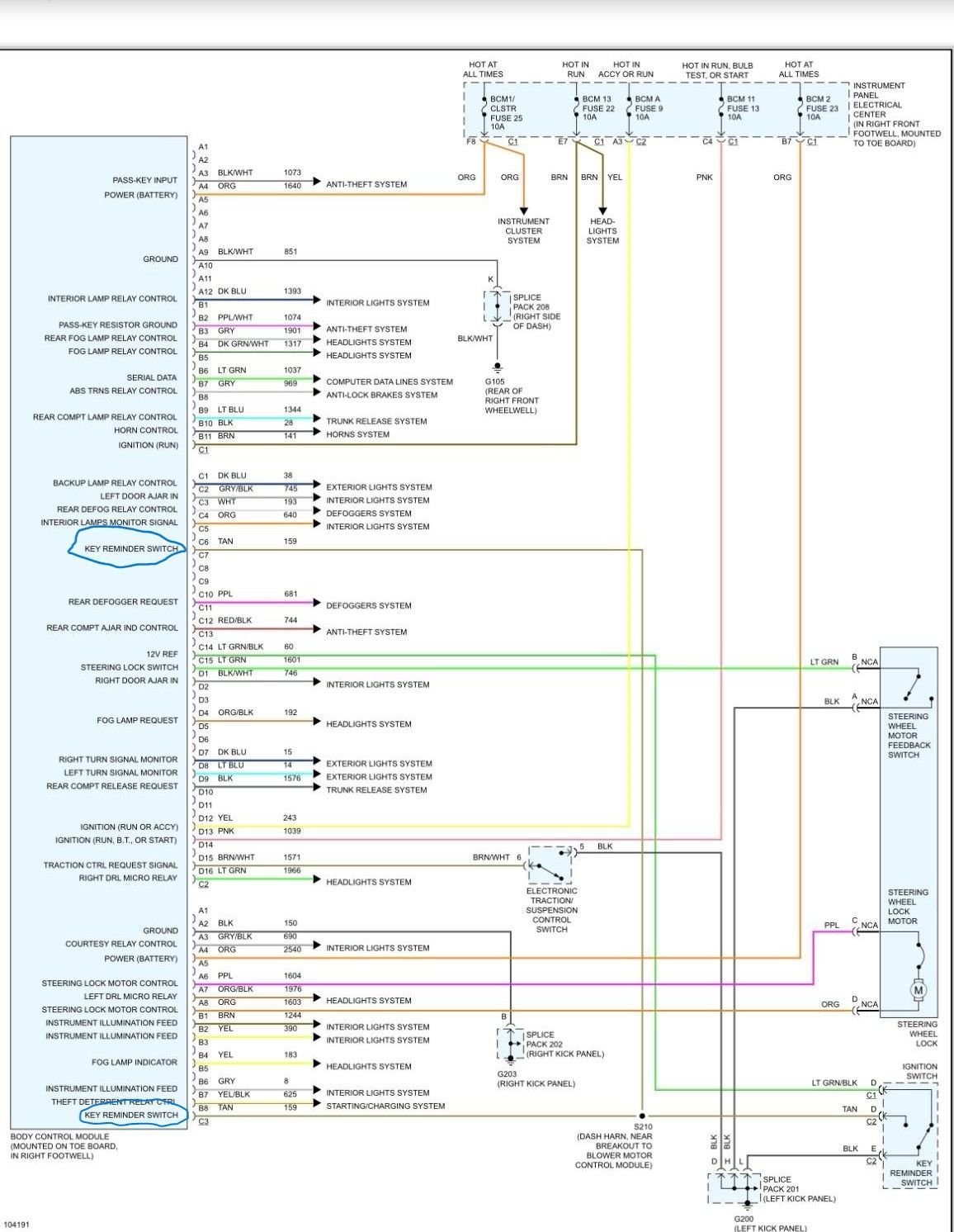 Alright cool so no bus issue. The only issue I've seen as far as power supply at the BCM is the key reminder circuit, I'm not sure if it would have any effect on what I've got going on but checking voltage from remote ground (battery negative post) to the 2 tan key reminder wires at the BCM (circled in blue) shows 7 volts with the key in the ignition, the OE diagram of the BCM (I have it saved on my work computer, I don't have it saved at home) shows that the BCM sends 12 volts down that wire with a resistor, and the circuit is grounded when the key is removed. Again I'm not sure if that would have any effect on this situation but that is the only issue as far as power and ground I've noticed with the BCM, like I said before the BCM gets constant battery voltage feed on the supply and ignition on wires
