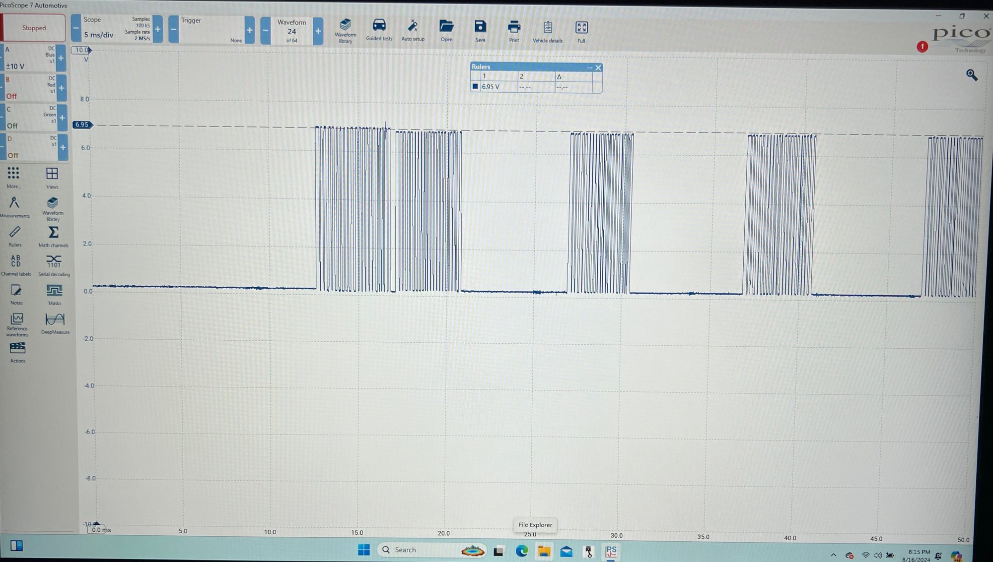No, if the bus were shorted to power or ground you’d only see a line at 12 volts or ground…you would see no data packets on the scope…this is my serial data bus on my 08 with the PicoScope…also 0-7 volts.