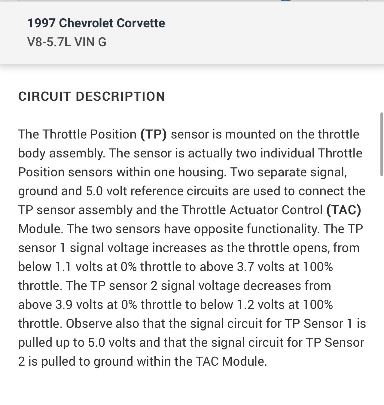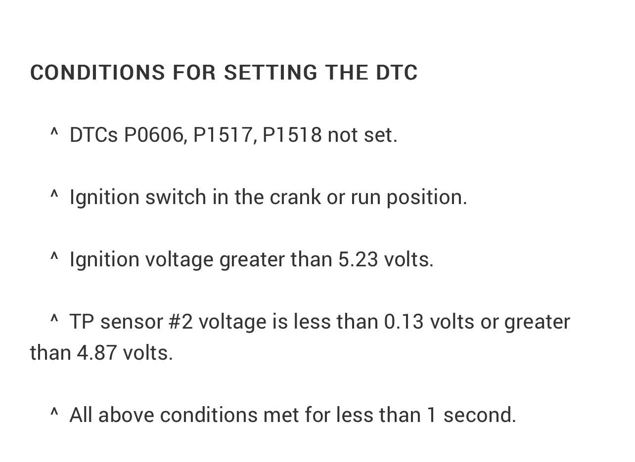 If you have a scan tool you can use that to look at your TPS voltage or you can use a DVOM…TPS sensors are simple potentiometers…you can look at the code setting criteria and the diagnostic “tree” below !!…if you have a scope you can use that too and would be your BEST choice …I don’t know what kind of help you need since it’s not going to be a blown fuse ??