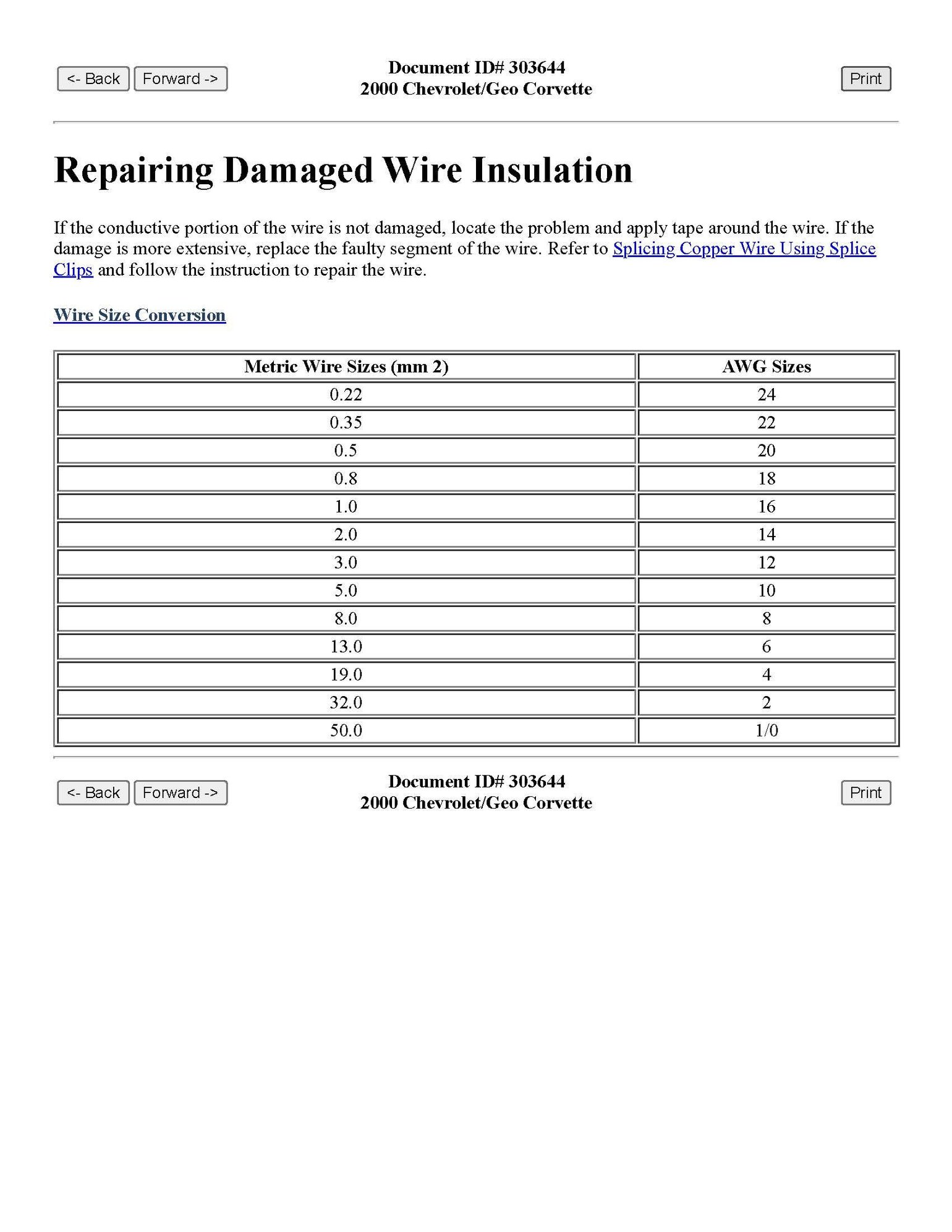 Your service manual has a table that explains wire sizes in detail...located in "Wiring Systems"
