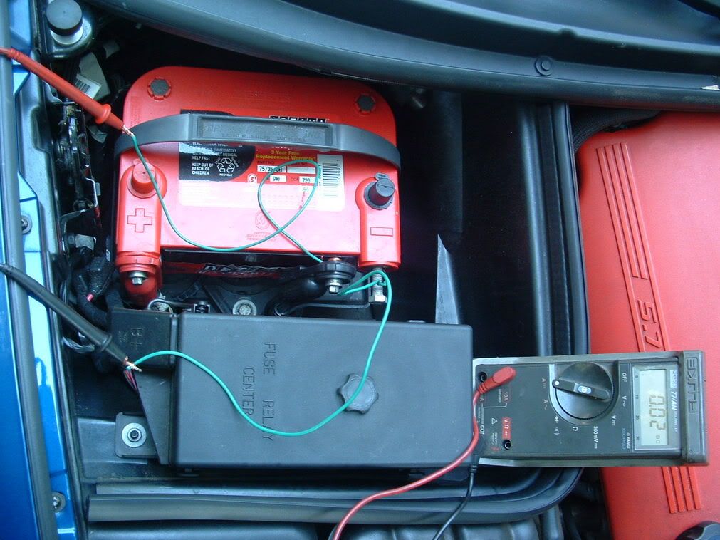 If there is a unwanted load, it could take up to 10-15 min for the current reading to settle out as low as it will go. The target reading will be 15-20 milliamperes. As you can see in the next photo, my 02 ZO6 draws .02 or 20 milliamperes.