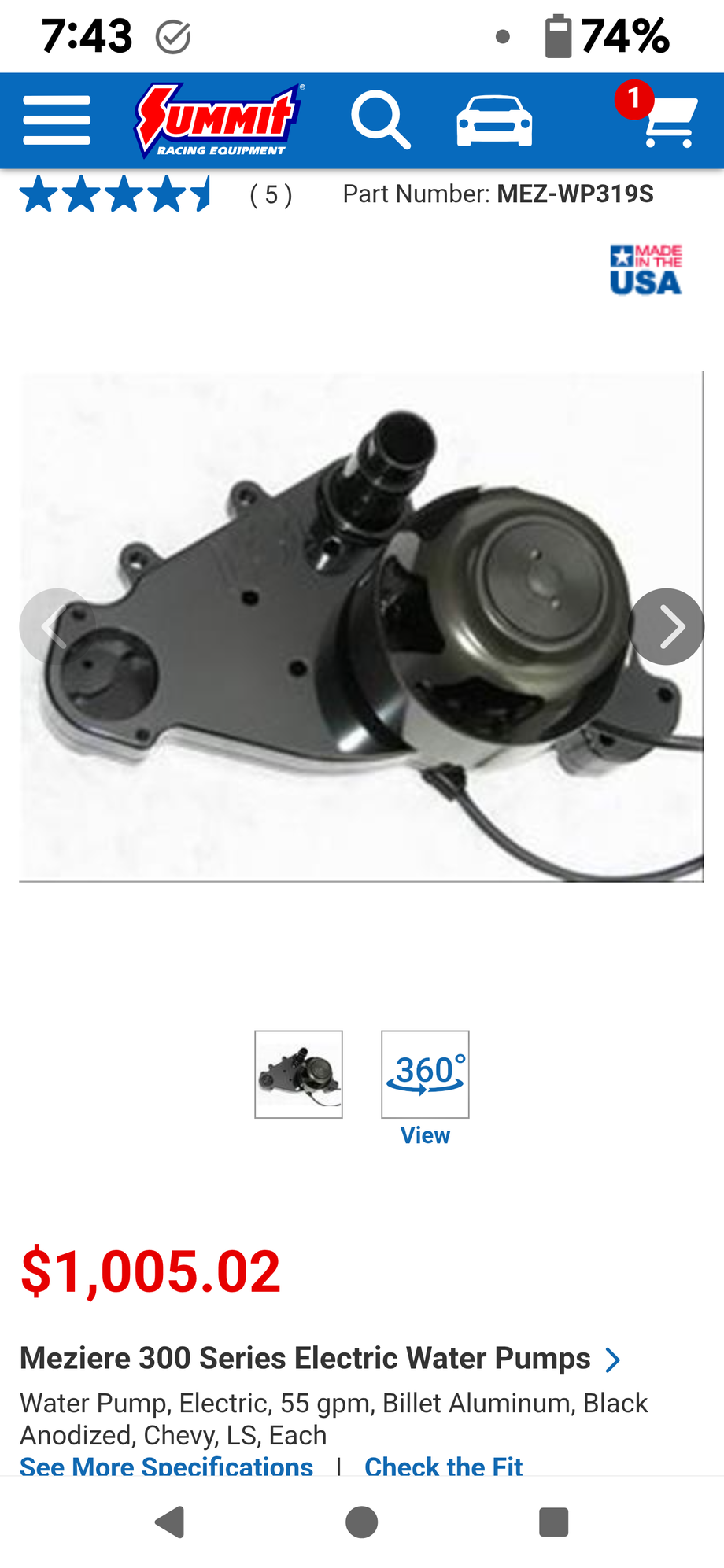 Yes, it is the Meziere 300 series WP319S, it sells for $1,000 right now on summit racing ...My C6 has a Tony Mamo top end, and the motor put 750 N/A horsepower at the crank, and 665 HP to the wheels...! I ran this car up at Pocono on the track multiple times with zero issues as far as heat is concerned. So with my experience, it's definitely good for track use. I race in the expert class so I'm not taking it easy at all. 7, 000 to 7,500 RPM shifts every time! 🇺🇸🏁🏁